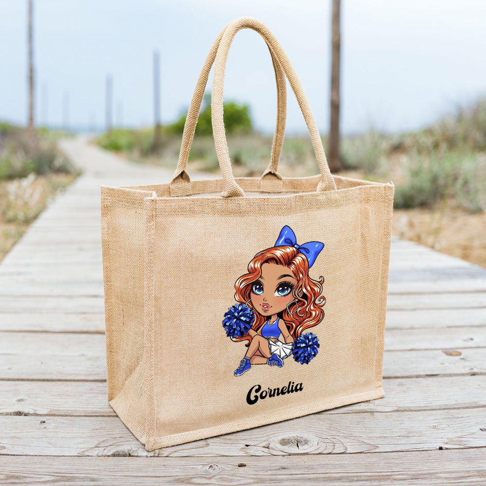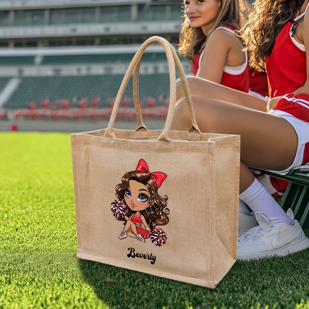 Diese Tragetasche ist von dem lebhaften und niedlichen Cartoon-Bild inspiriert, das Jugend und Vitalität zeigt. Jede Tragetasche ist mit einem einzigartigen Cheerleader-Mädchen-Muster auf der Vorderseite bedruckt, die bunt und voll von einer sportlichen Atmosphäre ist. Sie können Ihren Namen hinzufügen, um mehr persönliche Note hinzuzufügen.