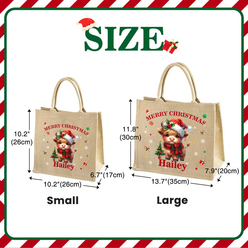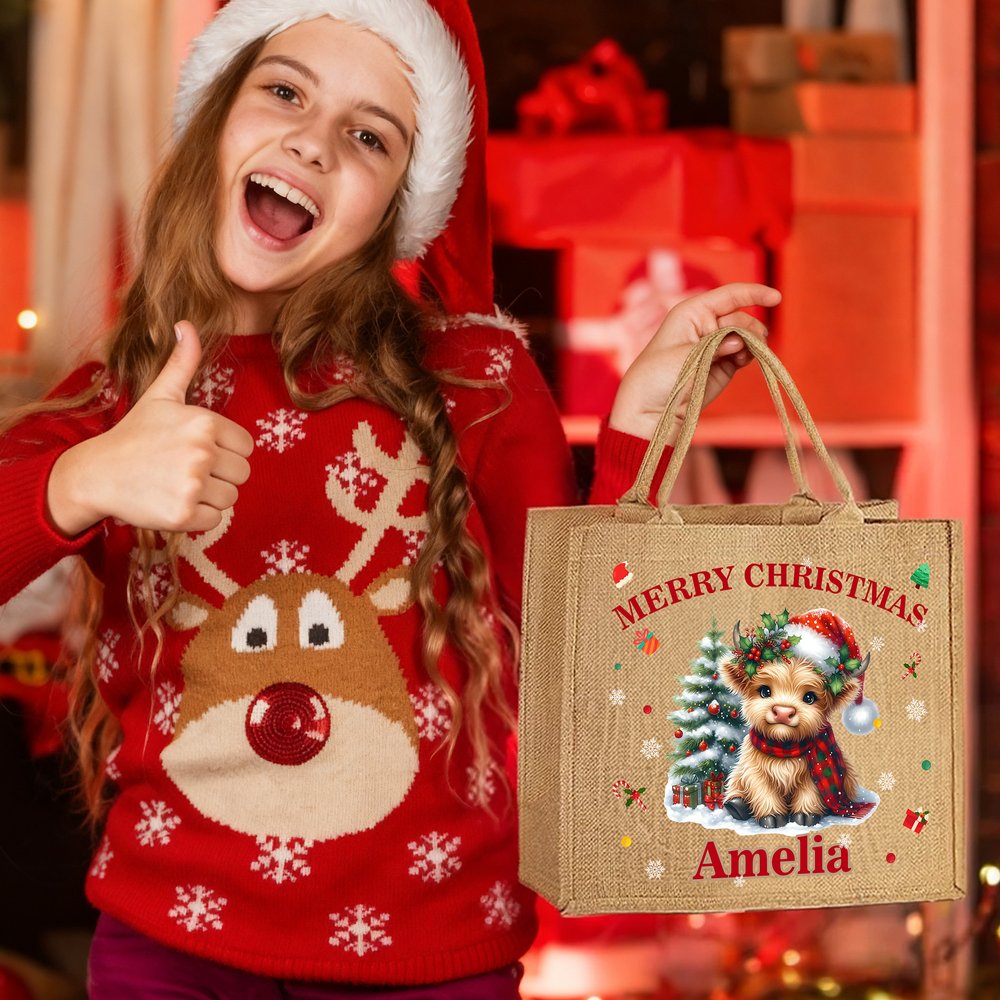 Im Mittelpunkt stehen 12 mit weihnachtlichen Elementen verzierte Hochland-Kalbsmotive. Der gesamte Stil strahlt festliche Fröhlichkeit und verspielten Charme aus und hebt sich von der Monotonie gewöhnlicher Tragetaschen ab. Jedes Kalb ist mit aufwendigen Weihnachtsdekorationen versehen, die zusammen mit Weihnachtsmannmützen und Schneeflocken Akzente setzen und so eine weihnachtliche Atmosphäre vermitteln. So wird die Tasche von einem einfachen Aufbewahrungsgegenstand zu einem einmaligen, bezaubernden Weihnachtsaccessoire.