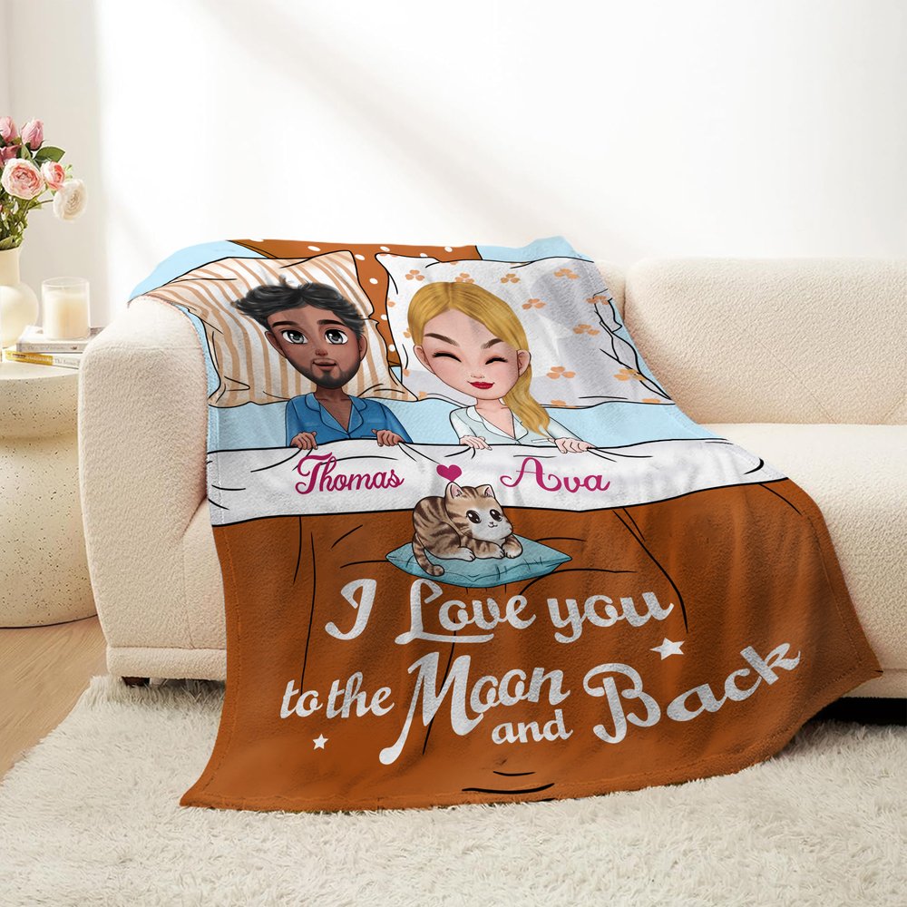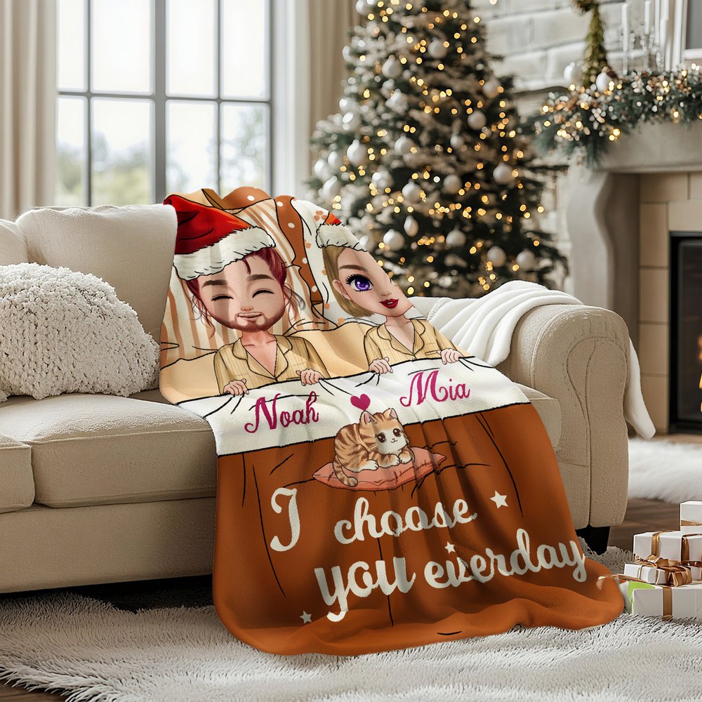 Diese Decke ist perfekt für Paare, die festliche Weihnachtsmützen tragen, und lässt sich individuell nach Ihren Vorstellungen gestalten. Sie können die Figuren besonders realistisch darstellen, Kissen und Kleidung auswählen und sogar die Katze auf der Decke bestimmen. Zusätzlich haben Sie die Möglichkeit, Namen und eine persönliche Botschaft hinzuzufügen. So entsteht eine romantische Erinnerung zum Anfassen, die sowohl ästhetisch begeistert als auch emotional berührt.