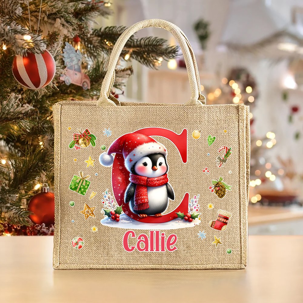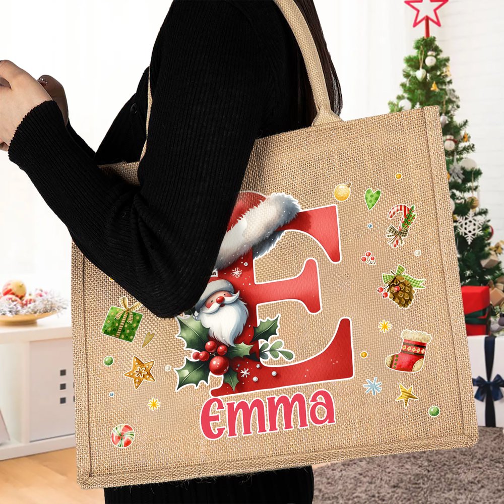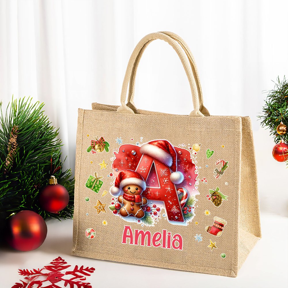 Mit liebenswerten Weihnachts-Cartoonfiguren und festlichen Schriftzügen als zentrale Designelemente wird diese clevere Kombination mit individuell gestaltbaren Initialen und Namen gepaart. Der gesamte Stil strahlt einen kindlichen Charme und ein Gefühl von Weihnachtsritualen aus. Lebendige Cartoon-Bilder vermitteln Weihnachtsstimmung, während personalisierte Buchstaben und Namen den Jutebeutel über gewöhnliche Designs hinausheben und ihn in ein einzigartig festliches Weihnachtsaccessoire verwandeln.