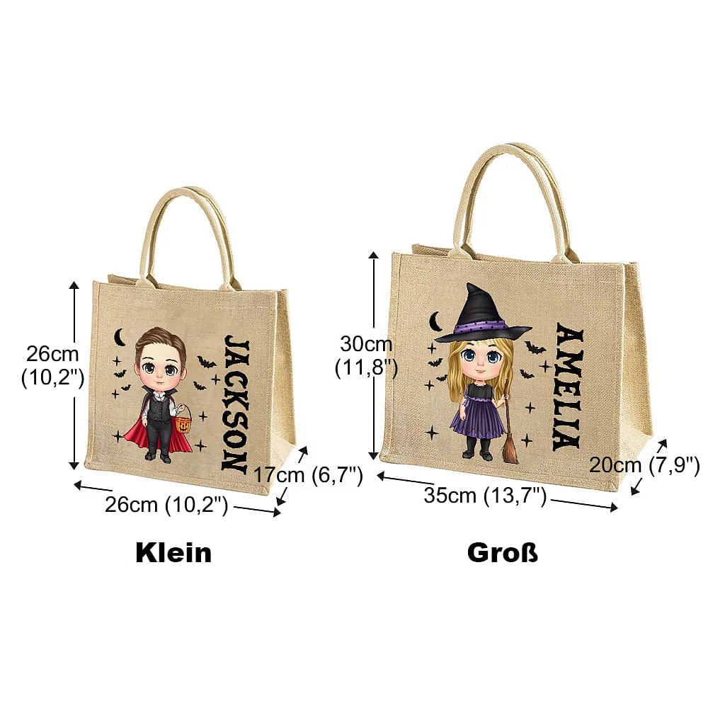 Diese Tragetasche ist aus hochwertiger Jute gefertigt, umweltfreundlich und unglaublich langlebig. Sie hält den Strapazen der Halloween-Nacht stand, vom Tragen schwerer Süßigkeiten bis zum Aushalten der Aufregung mehrerer Abenteuer. Die stabilen Griffe erleichtern den Kindern das Tragen und sorgen dafür, dass sie alle Leckereien mühelos einsammeln können!