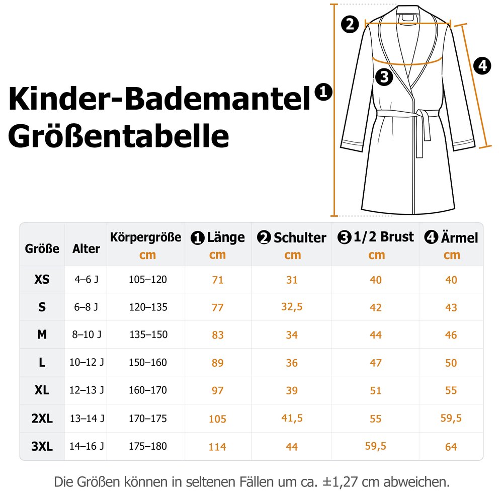 Dieser hochwertige Bademantel eignet sich ideal als Geschenk für Kinder und Jugendliche im Alter von 4 bis 16 Jahren. Ob als Geburtstags-, Weihnachts- oder Einschulungsgeschenk, als Zeichen besonderer Aufmerksamkeit für einen guten Freund oder eine gute Freundin – dieser Bademantel ist stets eine ausgezeichnete Wahl. Er spendet Wärme, vermittelt Geborgenheit und sorgt dafür, dass Kinder sich umsorgt fühlen, während gleichzeitig schöne Erinnerungen bewahrt werden.