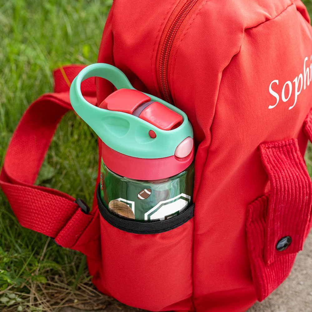 Die Wasserflasche ist für Kinder konzipiert. Ihre Größe und Form sind für Kinder bequem zu halten und daraus zu trinken. Das leichte und tragbare Design macht es einfach für Kinder zu tragen, ob in die Schule gehen, den Spielplatz, oder Familienausflüge.
