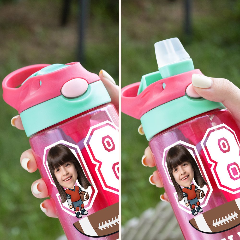 Diese Wasserflasche zeigt mehrere Cartoon-Fußballspieler-Körper. Du kannst das Foto des Spielers, die Nummer, den Namen und den Stil der Fußballuniform hinzufügen. Es ist ein persönlicher und kreativer Weg, um Ihre Liebe zum Fußball zu zeigen.