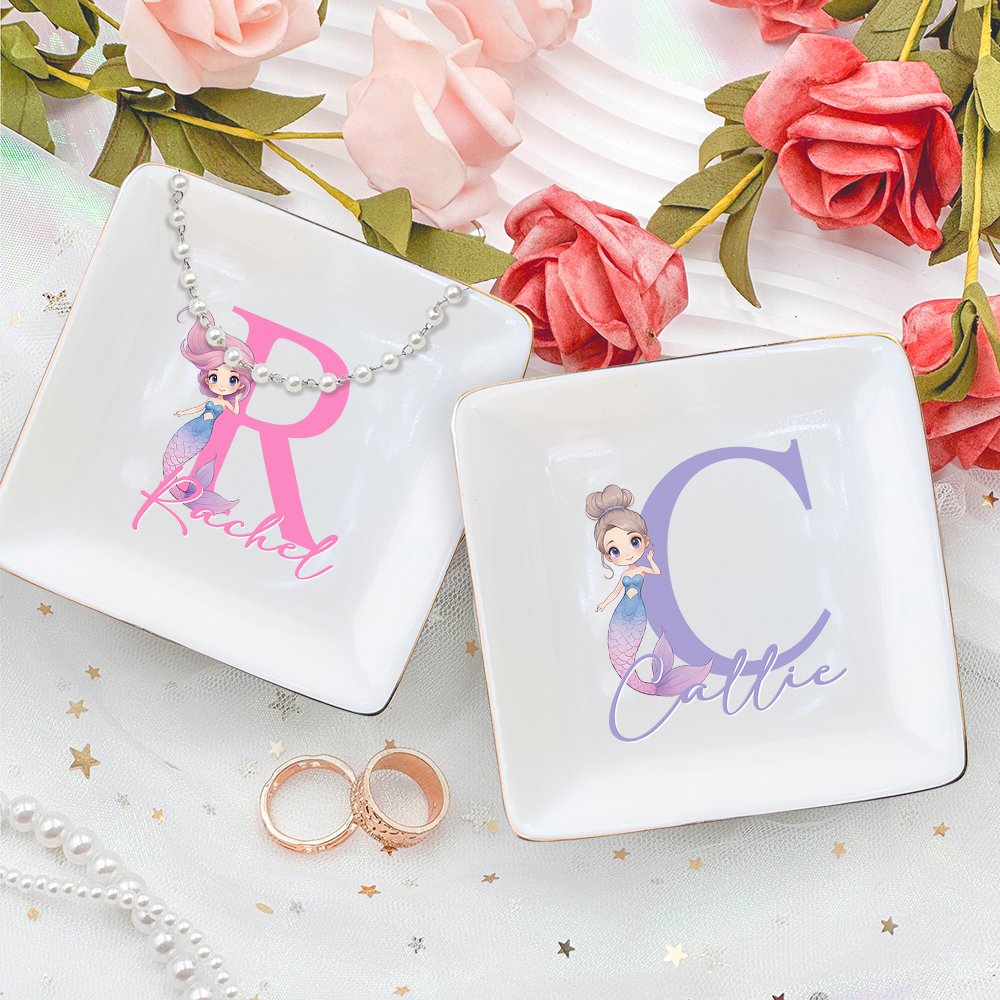Meerjungfrauen symbolisieren Freiheit und Geheimnis und werden oft als die Verkörperung schöner Mädchen gesehen. Unser Schmuckteller ist davon inspiriert, und Sie können aus 3 verschiedenen Formen von Meerjungfrauen wählen. Er lässt sich perfekt mit Initialen kombinieren und bietet die Möglichkeit, Namen zu personalisieren, sodass jedes Mädchen einen einzigartigen Schmuckteller haben kann.