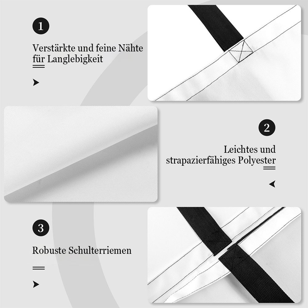 Diese Tragetasche ist aus hochwertigem Polyester gefertigt und daher robust und langlebig. Das Material hält häufigen täglichen Gebrauch stand, bricht nicht leicht beim Tragen schwerer Gegenstände und verformt sich auch nach längerem Gebrauch nicht. Die glatte Oberfläche ist leicht zu reinigen - Wasserflecken und Schmutz lassen sich einfach abwischen.