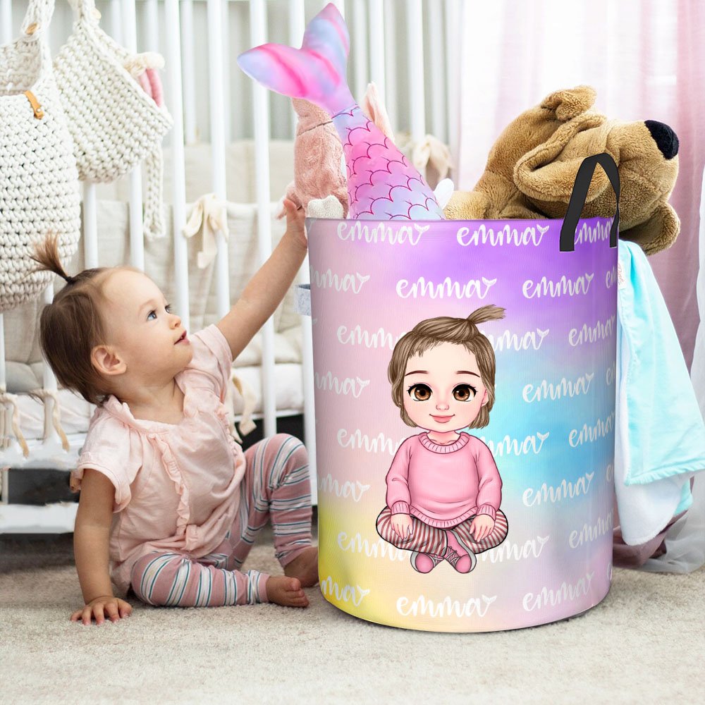 Die Schriftart der Meerjungfrau inspiriert diesen Wäscheaufbewahrungskorb und ist wie geschaffen für kleine Mädchen, die einen märchenhaften Stil mögen. Der Farbverlauf und das Zeichentrickmuster des Meerjungfrauenschwanzes können die Atmosphäre im Zimmer schnell aufhellen. Sie können den exklusiven Namen anpassen, um den Aufbewahrungskorb noch persönlicher zu gestalten und ihn zu einem einzigartigen und intimen Gegenstand für Ihr Kind zu machen.