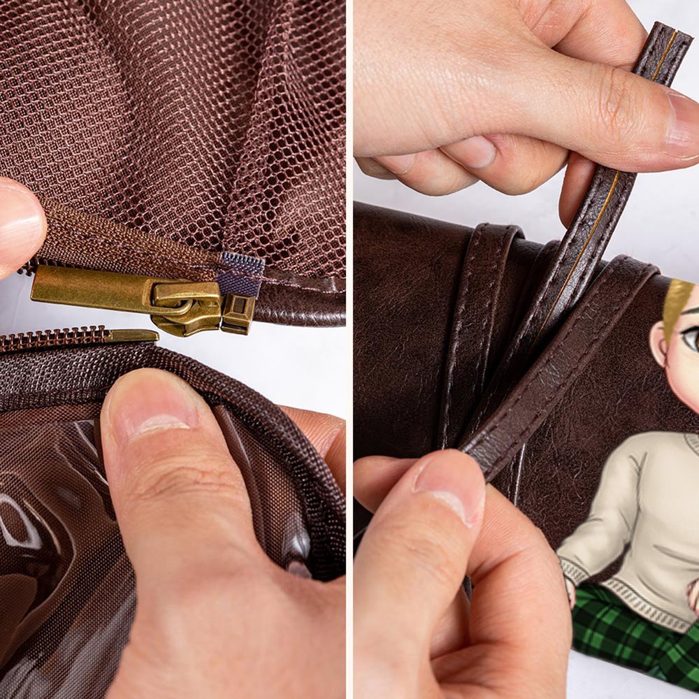 Diese personalisierte Kulturtasche ist ein fantastisches Geschenk für Freunde, Väter oder Großväter. Er eignet sich perfekt für Anlässe wie Vatertag, Weihnachten, Geburtstage oder als Geschenk für den Bräutigam und zeigt mit der individuellen Cartoon-Figur und dem Namen, dass man sich Gedanken gemacht hat. Das stilvolle Lederdesign und die praktische Handhabung machen es zu einem geschätzten Geschenk, das eine persönliche Note mit dem täglichen Nutzen verbindet.