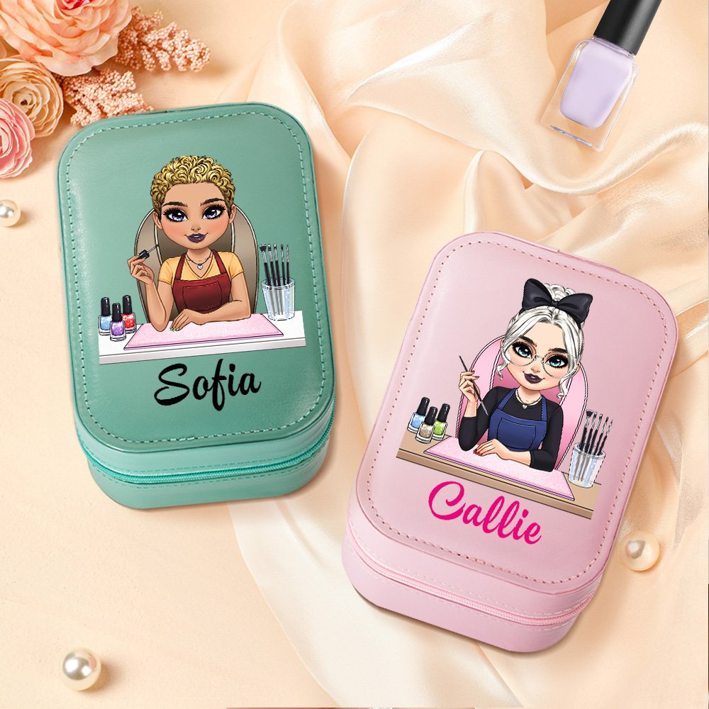 Dieses Schmuckkästchen kombiniert perfekt ein süßes Cartoon-Mädchen (basierend auf Ihrem Bild) mit Salon-Elementen (wie unseren Nagellackflaschen und -bürsten), um eine stilvolle und anspruchsvolle Atmosphäre zu schaffen. Es sind 10 Schriftfarben verfügbar, und Sie können Ihren Namen nach Ihren Wünschen hinzufügen, um Ihre einzigartige Persönlichkeit zu zeigen.