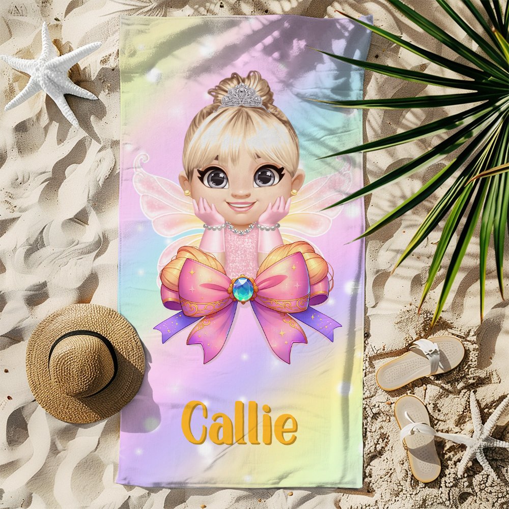 Dieses Strandtuch ist hauptsächlich mit Cartoon-Prinzessinnen gestaltet und ist mit 16 Arten von Schleifen gepaart, die verspielt und niedlich sind. Die Strandtücher sind in 9 Farben erhältlich, aus denen Sie wählen können. Nicht nur die Muster sind stilvoll und farbenfroh, aber Sie können auch den Namen und das Aussehen des kleinen Mädchens anpassen, so dass es ein einzigartiges personalisiertes Geschenk.