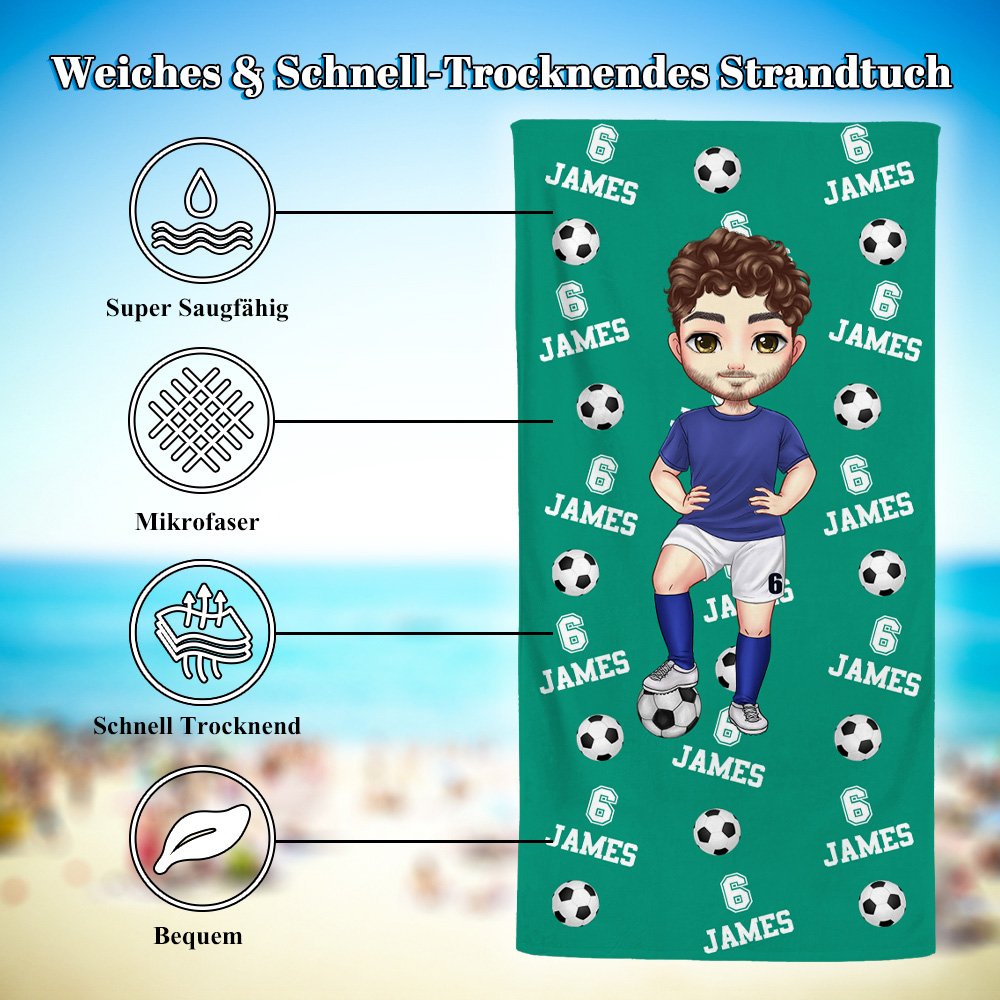 Dieses Strandtuch ist ein ideales Geschenk für Fußballfans oder andere, die gerne im Wasser Sport treiben. Sei es zum Geburtstag, an Feiertagen oder bei Teamevents, es wird Ihre Gedanken vermitteln. Das personalisierte Design lässt den Empfänger sich besonders umsorgt und wertgeschätzt fühlen, was es zu einem großartigen Begleiter für ihre Sport- oder Freizeitzeit macht. Egal, ob für einen Freund, ein Familienmitglied oder als Team-Erinnerungsstück, dieses Handtuch wird eine denkwürdige Wahl sein.