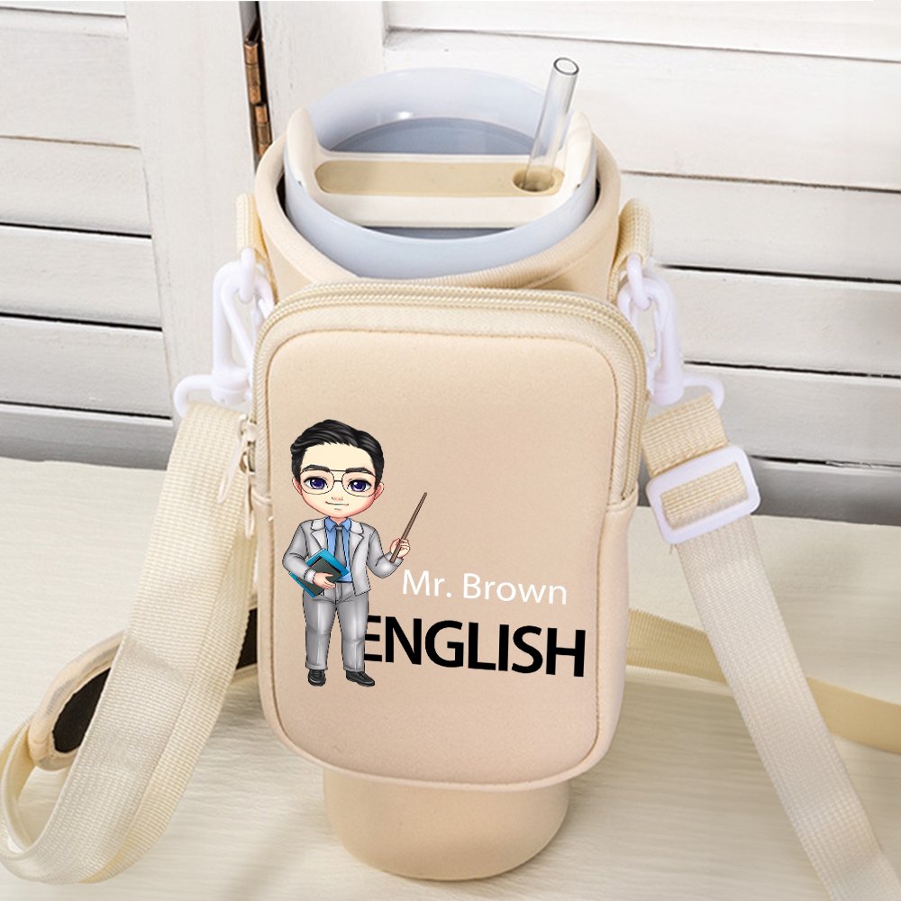 Diese Tragetasche ist mit einem niedlichen Lehrer-Cartoon-Bild bedruckt. Sie können auch den Namen des Lehrers und das unterrichtete Thema anpassen, um das Gefühl der Zugehörigkeit und den Spaß an der Verwendung zu verbessern. Die 4 Tragetaschenfarben weiß, blau, schwarz und rosa können Ihre persönlichen Bedürfnisse erfüllen.