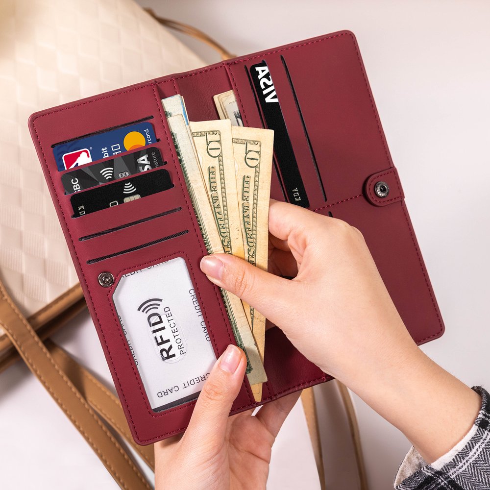 Das Portemonnaie ist aus hochwertigem PU-Leder gefertigt, das sich geschmeidig und luxuriös anfühlt und gleichzeitig robust und langlebig ist. Die Oberfläche des PU-Leders ist sehr abriebfest und schmutzabweisend und somit ideal für den täglichen Gebrauch. Das Portemonnaie ist mit einem RFID-Schutz ausgestattet, der unbefugte Funksignale von außen effektiv blockiert. Dies bietet Sicherheit für gespeicherte Karten wie Bankkarten und Ausweise mit Chips und verhindert, dass persönliche Informationen böswillig gelesen oder kopiert werden, wodurch die Finanz- und Informationssicherheit gewährleistet wird.