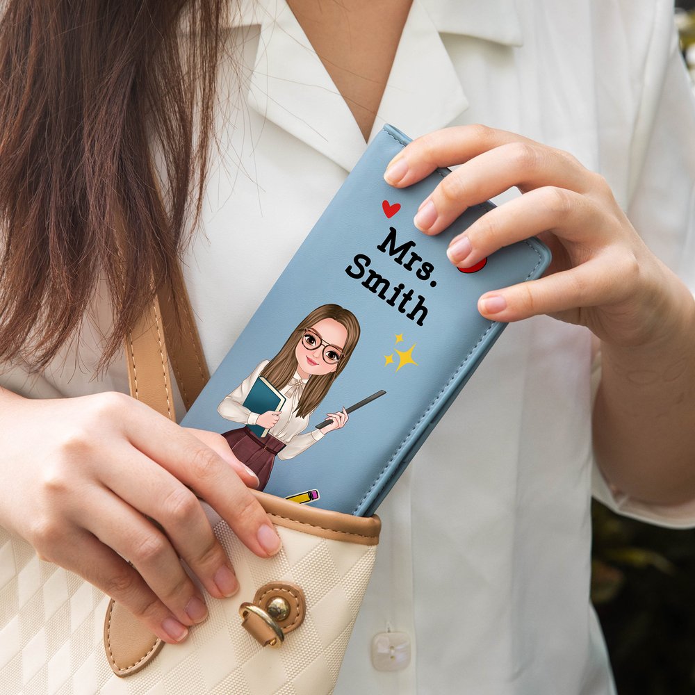 Dieses Portemonnaie ist eine Hommage an Lehrerinnen und Lehrer mit einem aufwändigen Design, dessen Kernelemente herzerwärmende Cartoon-Figuren sind. Die Brieftasche kann mit dem Cartoon-Bild eines Lehrers gestaltet werden, komplett mit Nachnamen, die mit "Ms.", "Miss" oder "Mrs." beginnen, und ist geschickt mit lehrbezogenen Elementen wie Büchern, Linealen und Kreide verziert, so dass das vertraute Bild eines Lehrers auf der Brieftasche zum Leben erwacht. Jedes Detail verkörpert unsere Vertrautheit und unseren Respekt für Lehrer und verwandelt die Brieftasche in mehr als nur ein Aufbewahrungsinstrument