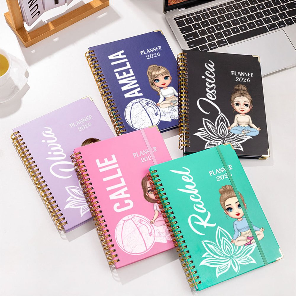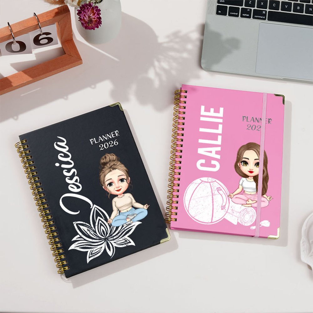 Unsere Notizbücher sind in fünf Farben erhältlich. Sie können die Cartoon-Yoga-Figur nach Ihren Vorstellungen gestalten und mit Lotus- oder Yogaball- und Yogamattenmustern kombinieren, die voller Kraft und Vitalität sind. Sie können auch Ihren Namen hinzufügen, um ein einzigartiges Fitness-Notizbuch zu erstellen und Ihren Fitness-Charme zu zeigen.