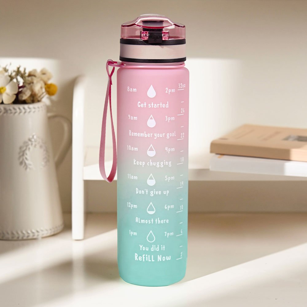 Der Körper der Wasserflasche ist speziell auf den Wassermesser abgestimmt, damit Sie Ihre Trinkzeit sinnvoll einteilen können. Das große Fassungsvermögen von 32 Unzen sorgt dafür, dass du während deines täglichen Trainings gut hydriert bist und hilft dir, deine beste Leistung zu erbringen.