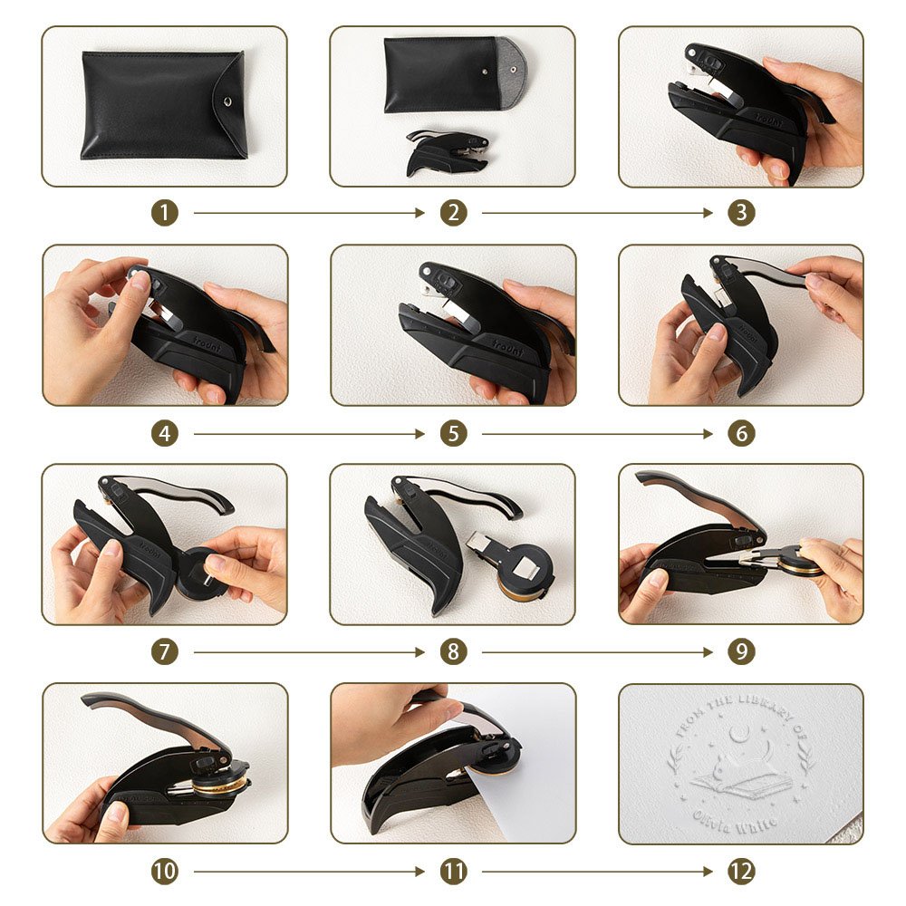 Unser Buchpräger wurde mit Blick auf Bequemlichkeit und Benutzerfreundlichkeit entwickelt. Er liegt gut in der Hand und gewährleistet müheloses Prägen bei jedem Druck. Durch seine kompakte Größe ist er tragbar und begleitet Sie auf Ihren literarischen Abenteuern zu Hause, in der Bibliothek oder bei Buchclubtreffen.