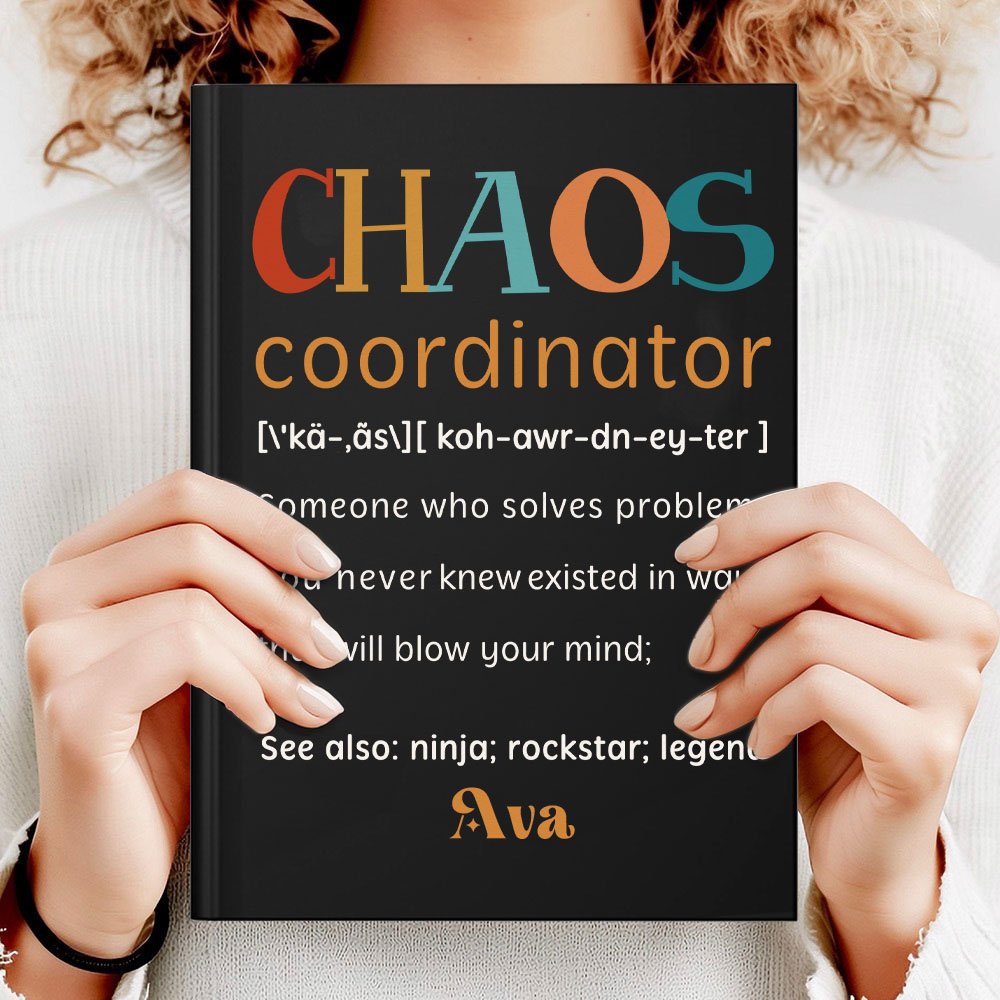 Jedes Detail dieses Notizbuchs wurde sorgfältig entworfen, und die Definition von "CHAOS Coordinator" ist auf der Vorderseite aufgedruckt, was den Humor und die Weisheit des "Chaos Coordinator" perfekt zum Ausdruck bringt. Sie können es mit Ihrem Namen anpassen, so dass es ein einzigartiges Kunstwerk, das sowohl Persönlichkeit zeigen und übermitteln herzliche Wünsche kann.