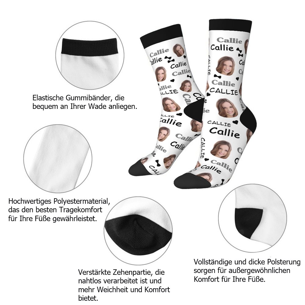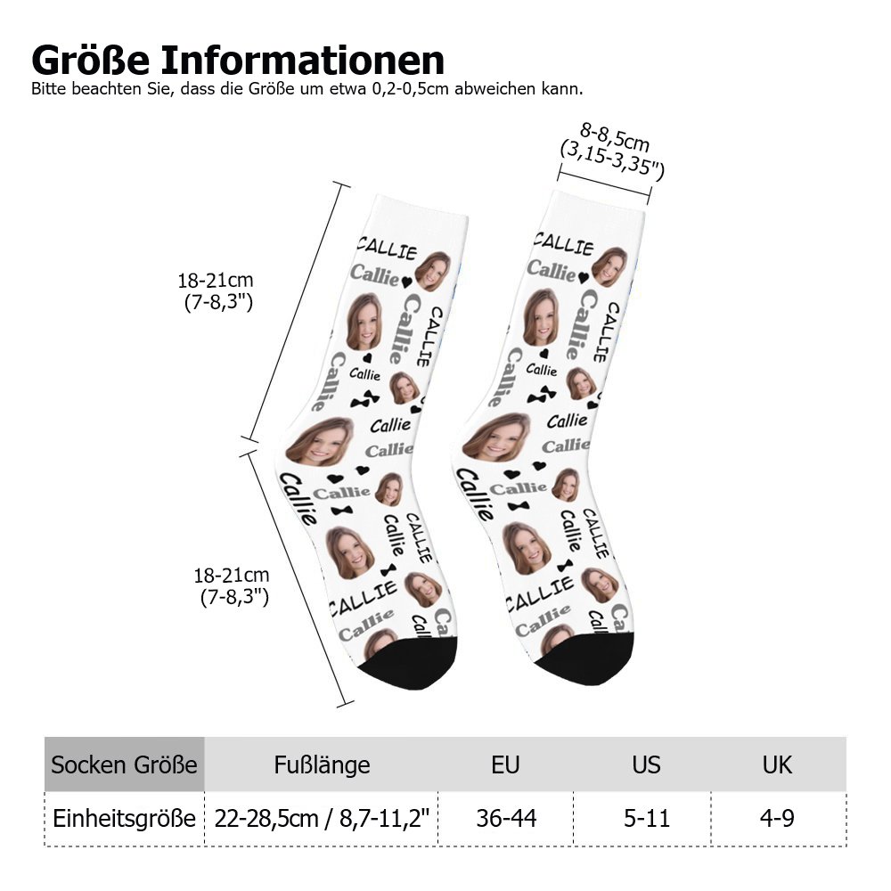Ihr Foto und Name werden auf den Socken in verschiedenen Schriftarten und Richtungen angezeigt, was den besten visuellen Effekt für eine einzigartige Heimdekoration bietet.