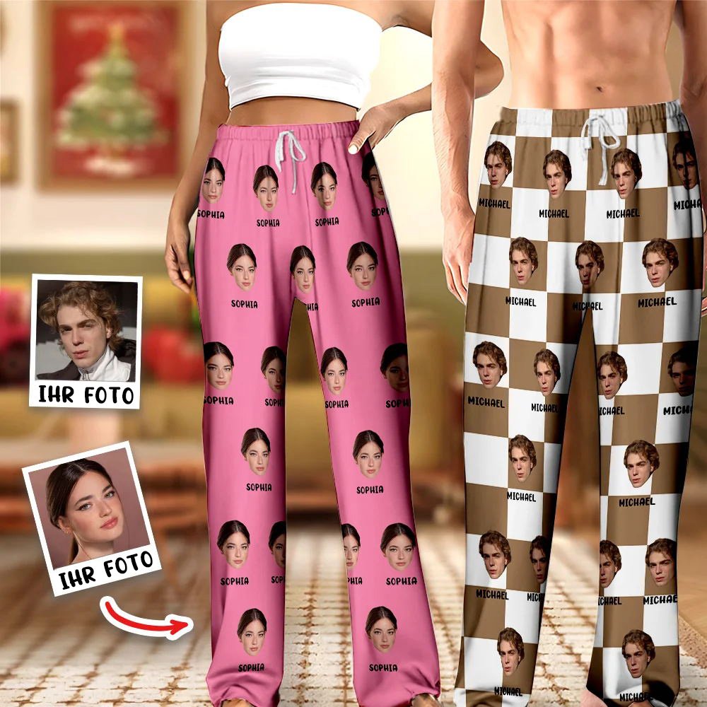 Diese einzigartigen Pyjamahosen sind nahtlos in ein stilvolles kariertes Design integriert. Jedes Paar kann mit individuellen Fotos versehen werden, was sie sehr persönlich und aussagekräftig macht. Die Fotoelemente werden sorgfältig durch mehrere Waschgänge gedruckt, um Qualität und Klarheit zu erhalten.