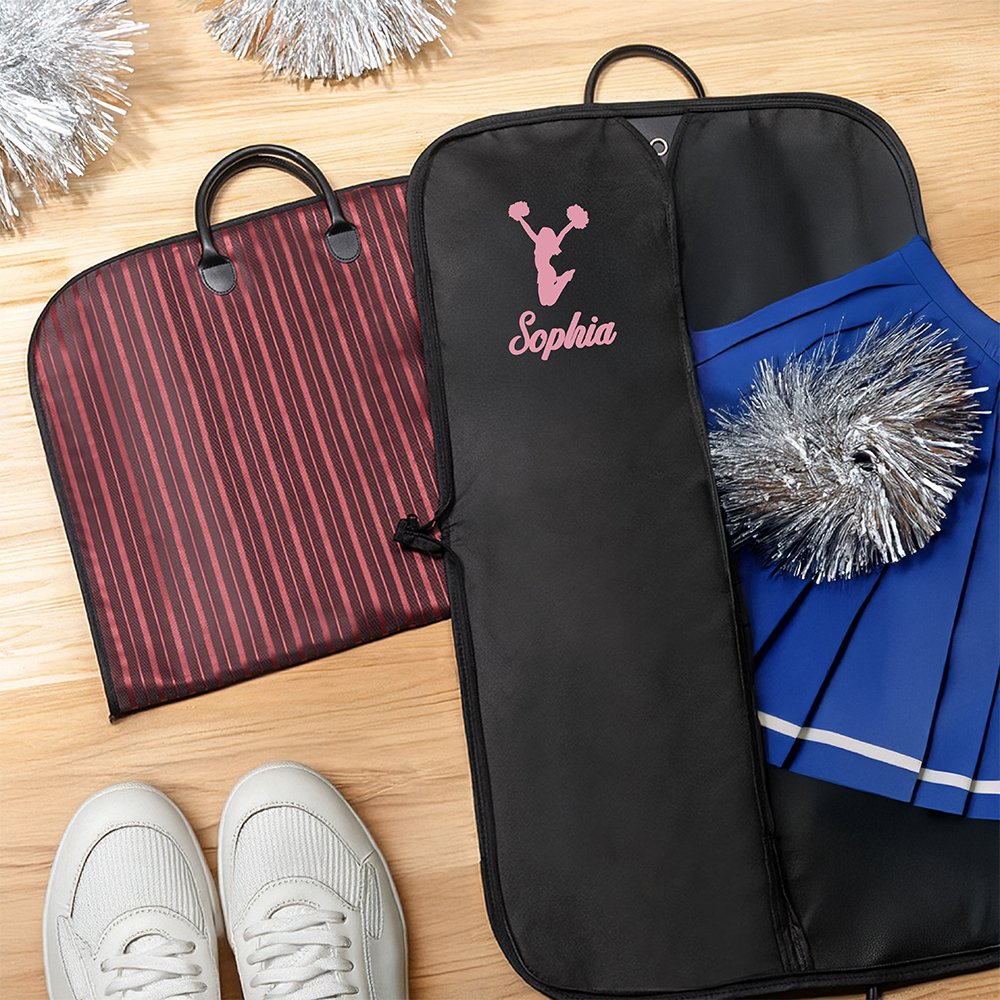 Mit einem speziellen Cheerleading-Grafikdesign und einem anpassbaren Namen ist dieser Kleidersack speziell für Cheerleaderinnen konzipiert. Das gestreifte Design ist einfach und individuell. Beim Aufhängen kann das Design der Vorderseite des Beutels perfekt zur Geltung kommen, sodass Sie Ihre Persönlichkeit und Ihren Geschmack bei jeder Gelegenheit zeigen können.