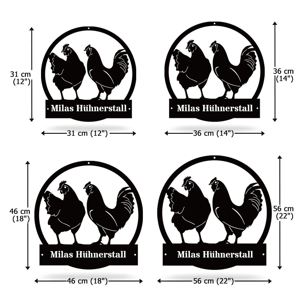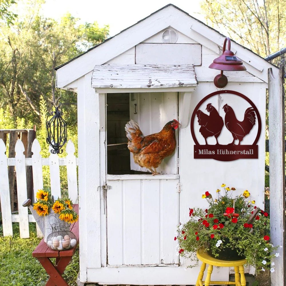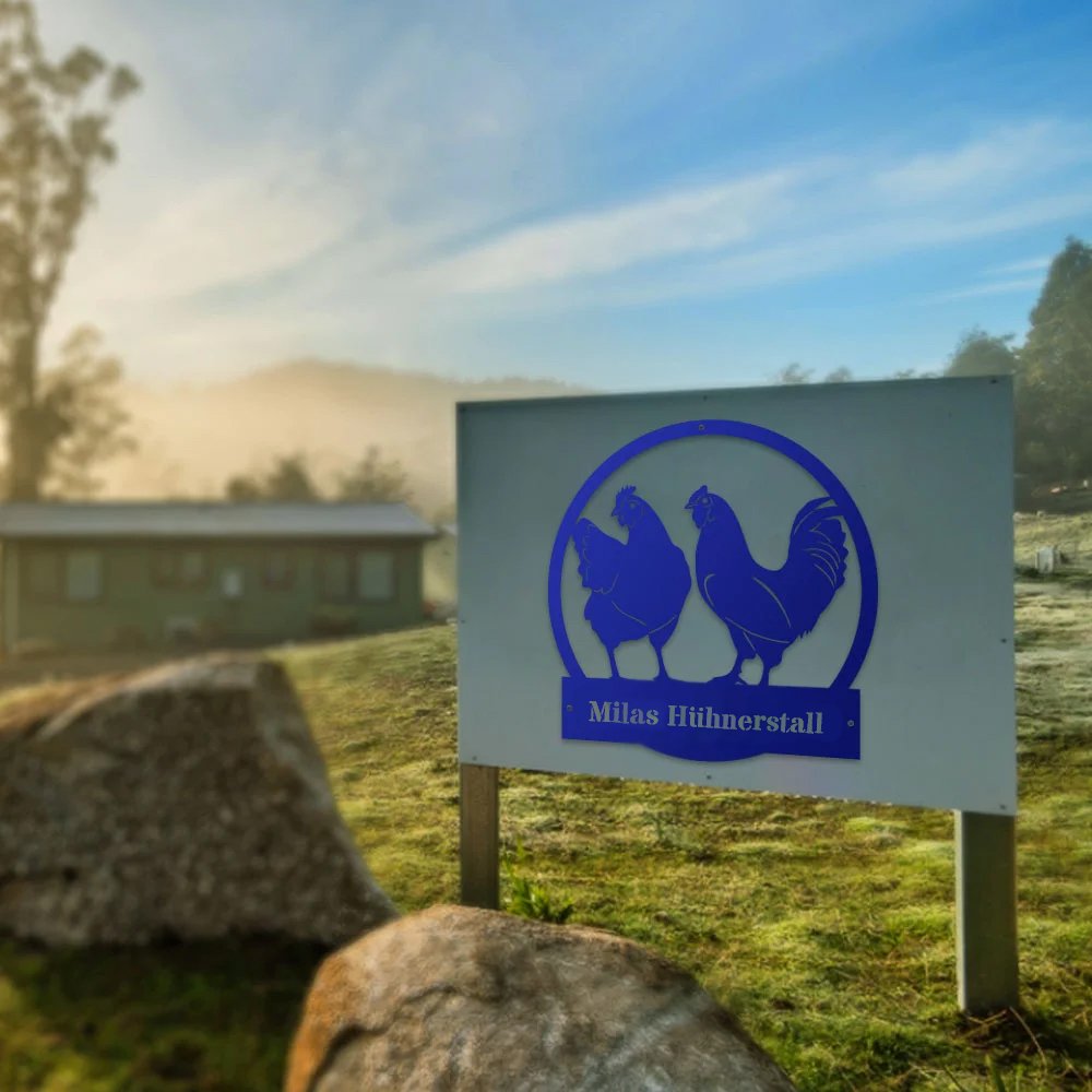 Dieses personalisierte Retro-Hühnerstall-Metallschild mit Hühner-Grafik ermöglicht es Ihnen, einen exklusiven Text zu gestalten, der Ihren Bauernhof-Stil perfekt unterstreicht. Ob Ihr Name oder der Name des Bauernhofs, dieses Schild verleiht Ihrer Einrichtung eine einzigartige Note.