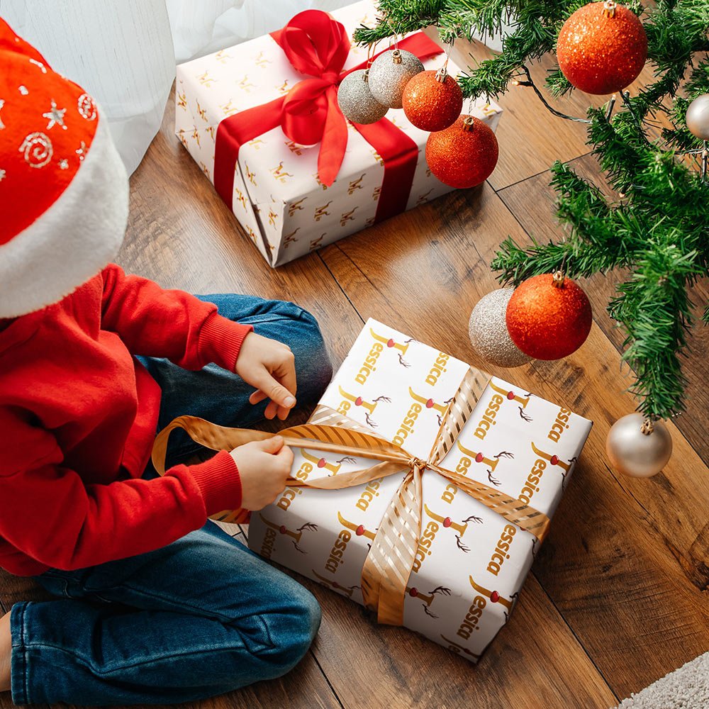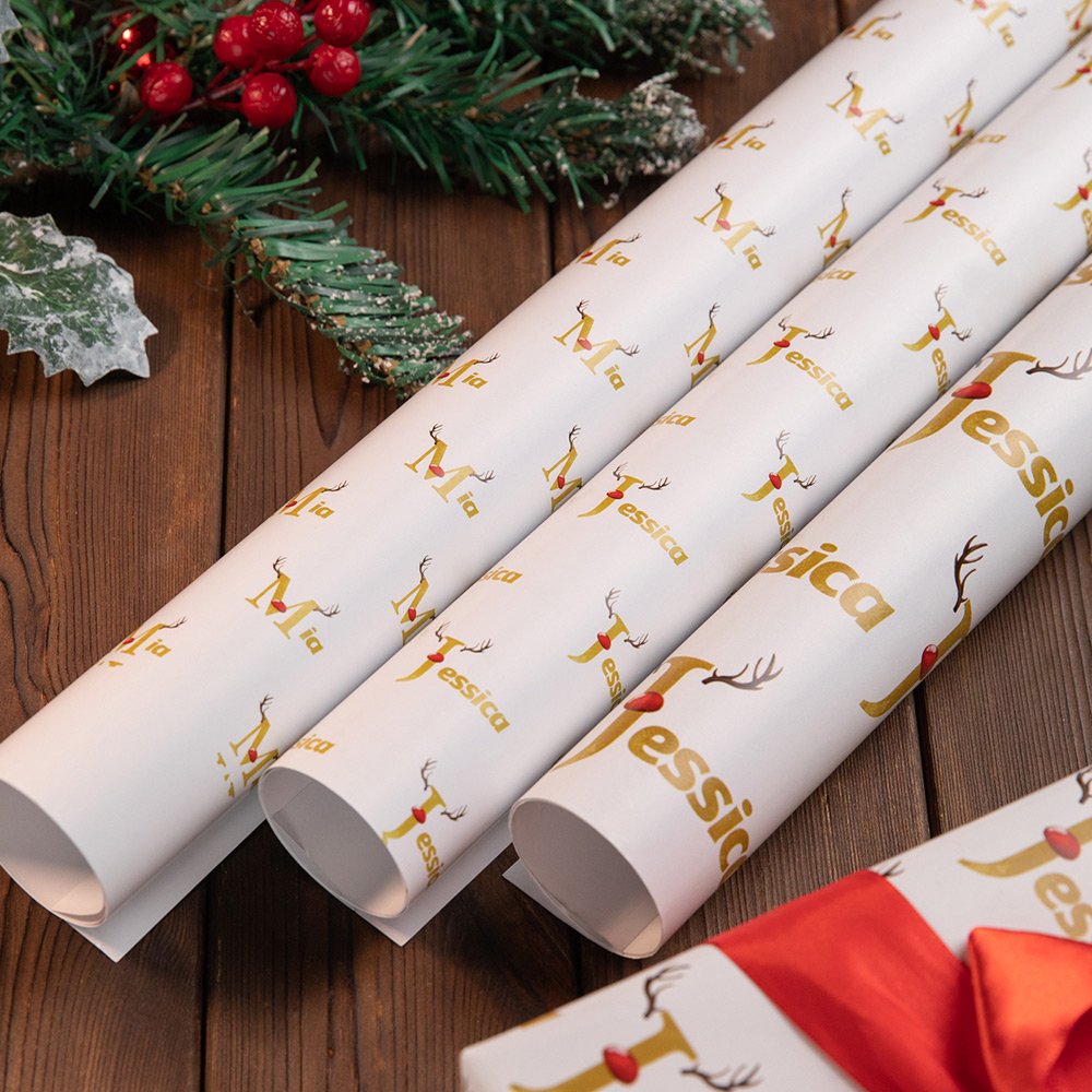 You can customize the recipient's name on the wrapping paper, and our custom monogram is designed with watercolor, and the initials are even customized with a cute moose, which blends in even more with the Christmas spirit and makes this gift even more personalized and unique, with a more personal touch. Whether you're wrapping a gift for a family member or a friend, this gift is sure to stand out under the Christmas tree.