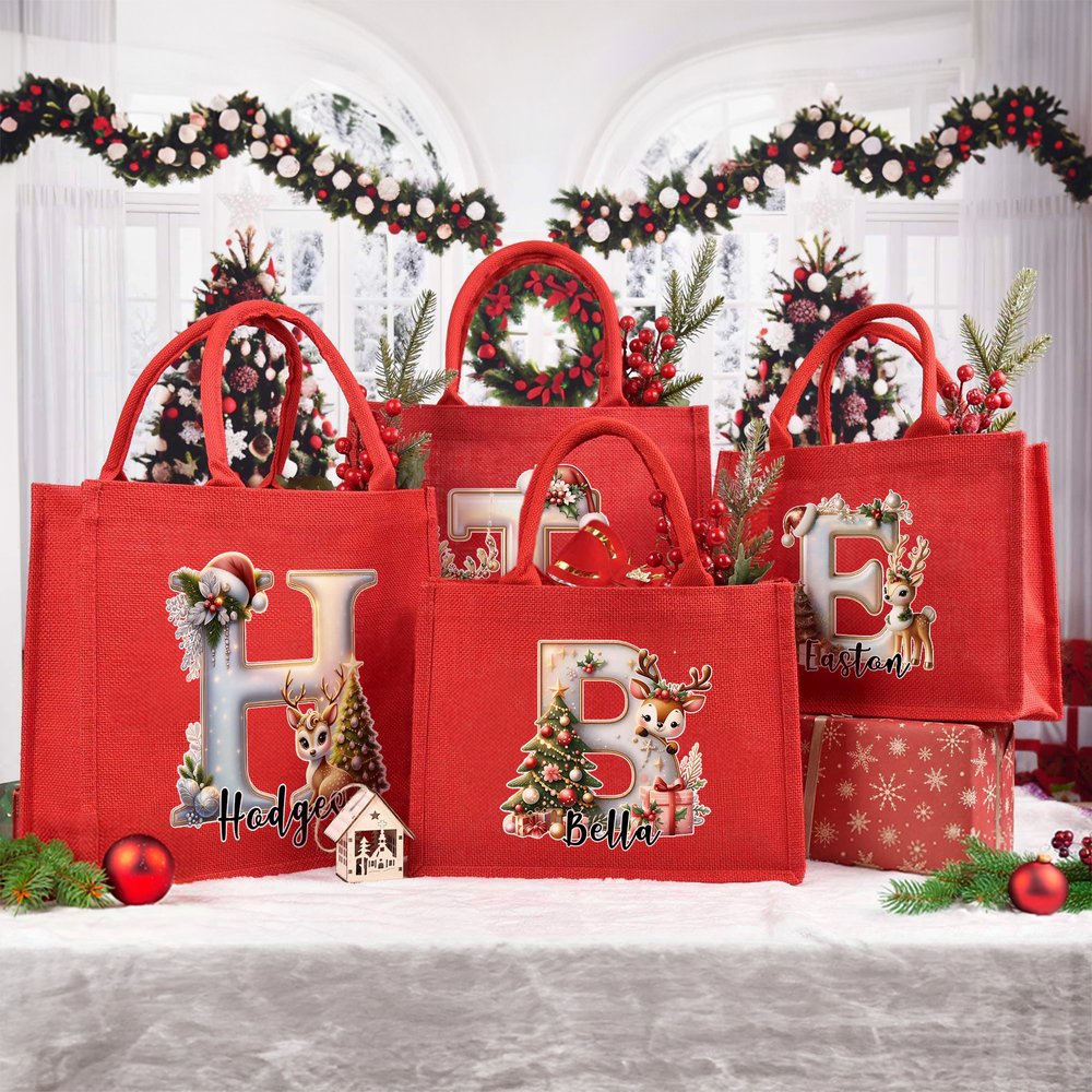 Diese Tasche aus strapazierfähigem Jutegewebe ist besonders langlebig. Sie hält dem häufigen Gebrauch bei täglichen Ausflügen und der Aufbewahrung im Urlaub stand und verformt sich nicht mit der Zeit. Die natürliche Textur des Materials verbindet Ästhetik mit Funktionalität. Die rote Oberfläche verfügt über einen gestochen scharfen Druck, der dafür sorgt, dass Weihnachtsmotive und individuelle Buchstaben lebendig bleiben. Der geräumige Innenraum bietet reichlich Stauraum.