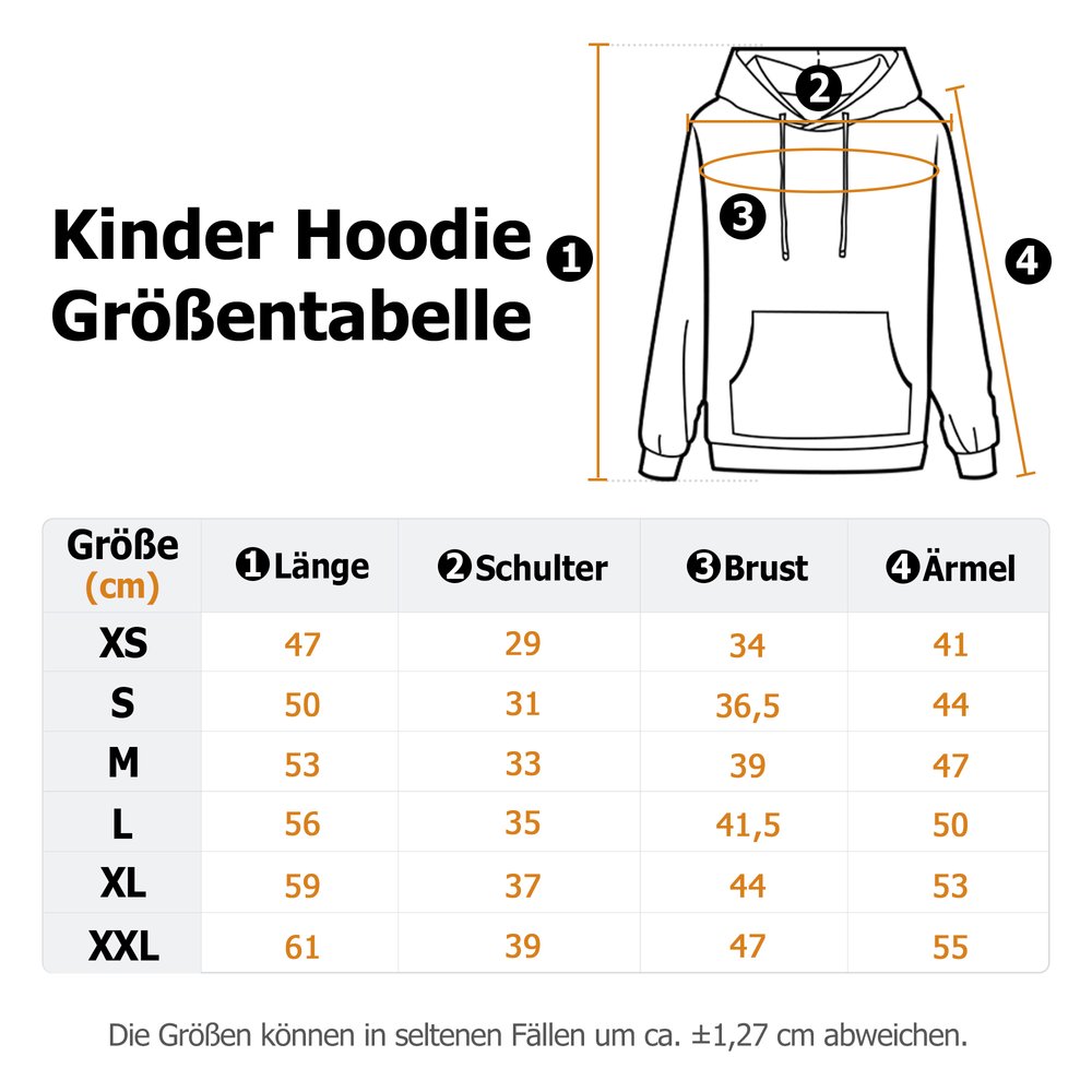 | Größe: | Sweatshirt für Kinder – XS, XS, S, M, L, XL, 2XL Sweatshirt für Erwachsene – XXS, XS, XS, S, M, L, XL, 2XL, 3XL Kapuzensweatshirt für Kinder – XS, XS, S, M, L, XL, 2XL Kapuzensweatshirt für Erwachsene – XXS, XS, XS, S, M, L, XL, 2XL, 3XL |