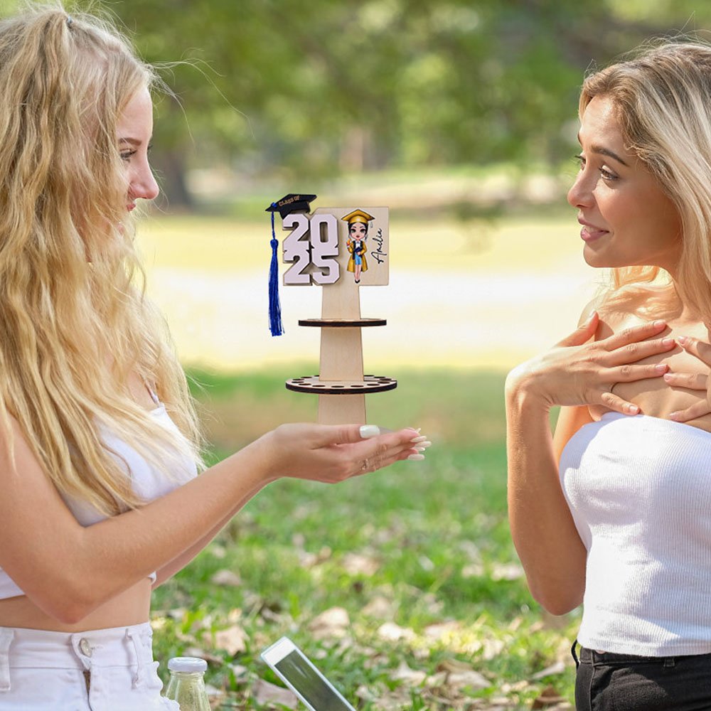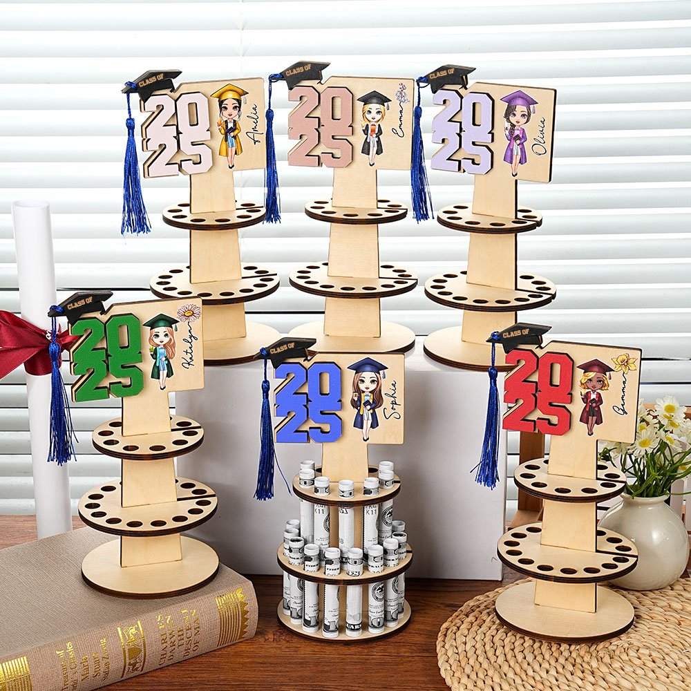 Dieser einzigartige Geldhalter ist nicht nur eine fantastische Dekoration für die Abschlussfeier, sondern auch ein durchdachtes Geschenk, das mit Geld gefüllt ist und an das sich die Absolventen jahrelang erinnern werden. Sie können das Cartoon-Bild des Absolventen individuell gestalten und den Namen des Absolventen, die Farbe des Abschlussjahres und sogar die Geburtsblume hinzufügen. Mit unseren Anpassungsoptionen können Sie dieses Geschenk so einzigartig und unvergesslich machen wie die Absolventen!