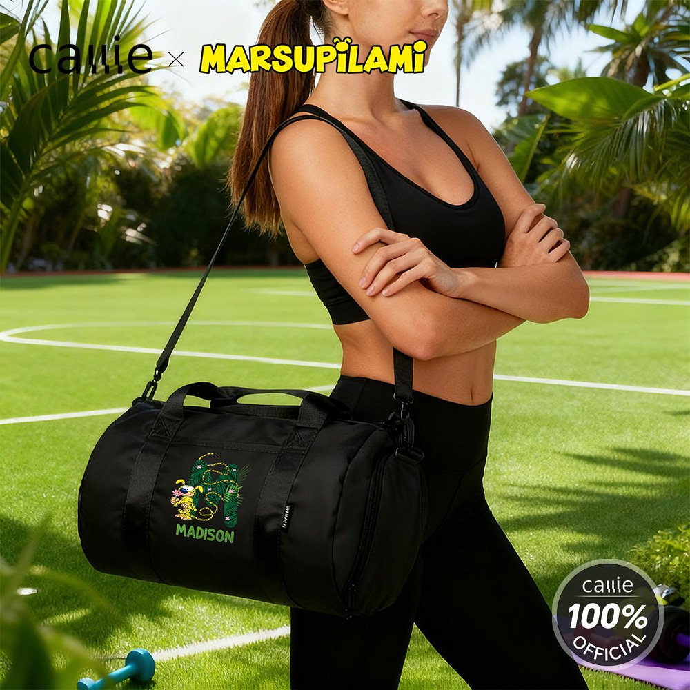 Das 1952 vom belgischen Cartoonisten André Franquin geschaffene Marsupilami ist ein Dschungelwesen mit gelbem Fell, schwarzen Flecken und einem superflexiblen, langen Schwanz. Es ist berühmt für seinen kultigen "Houba!"-Ruf, schwanzspringende Bewegungen und eine Mischung aus Gepardengeschicklichkeit und Affenschlauheit. Personalisiere deine Tasche mit deinen Initialen und deinem Namen, um einen einzigartigen Begleiter zu schaffen, der im Fitnessstudio, auf Reisen oder bei Outdoor-Abenteuern auffällt.