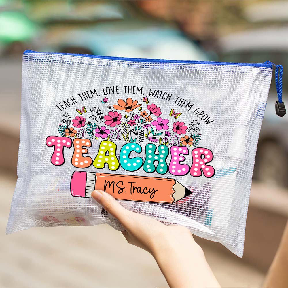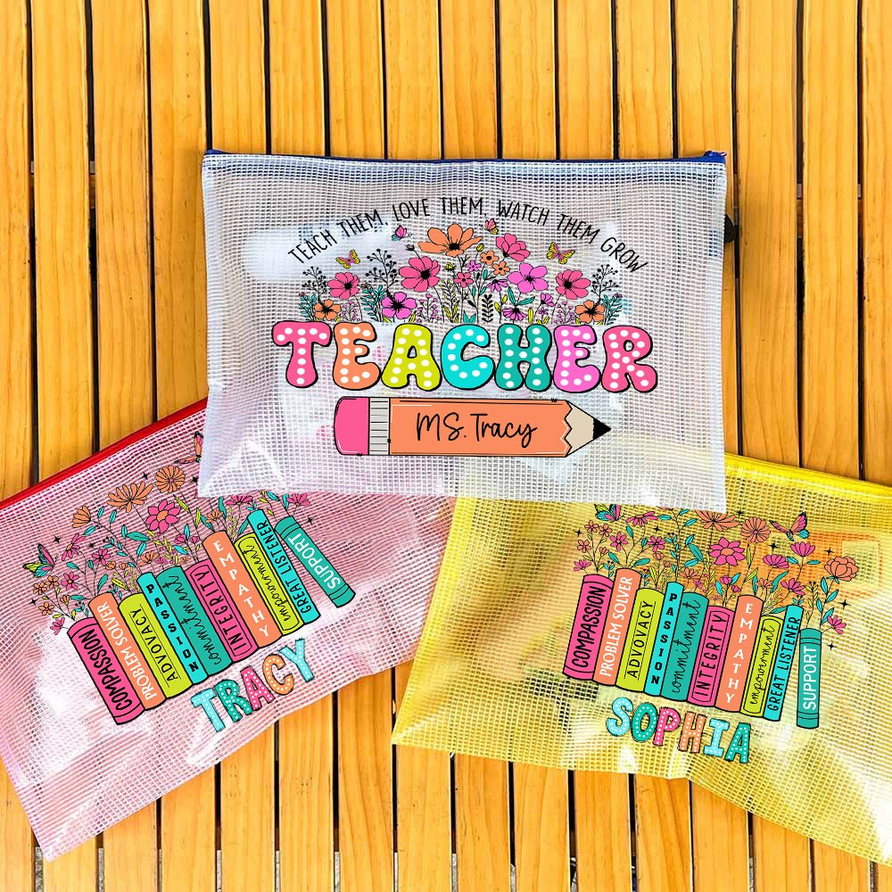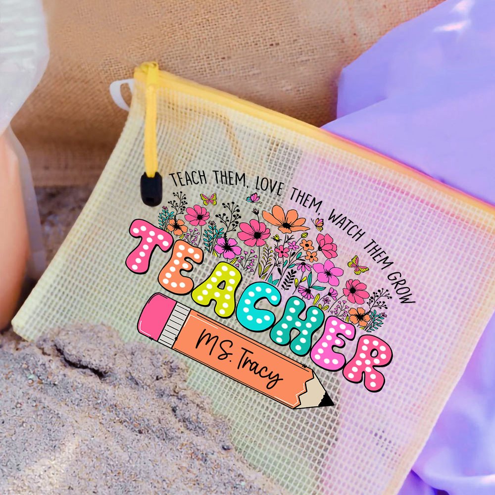 Die Mesh-Reißverschlusstasche verfügt über ein fesselndes Wildblumendesign, das Wachstum und blühendes Potenzial symbolisiert. Du kannst sie mit ihrem Namen versehen und so deine Wertschätzung für ihr Engagement und ihre harte Arbeit zeigen.