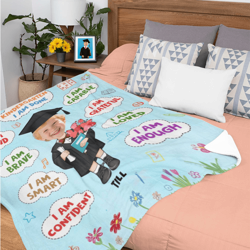 Ein hervorragendes Geschenk für Vorschul-, Kindergarten- oder Grundschulabsolventen, aber auch für Geburtstage und Feiertage. Diese Decke symbolisiert Ermutigung, Wachstum und Liebe und begleitet Kinder auf ihren ersten Schritten im Leben. Sie ist eine aufmerksame Art und Weise, ihre Reise zu feiern und bleibende Erinnerungen zu schaffen.