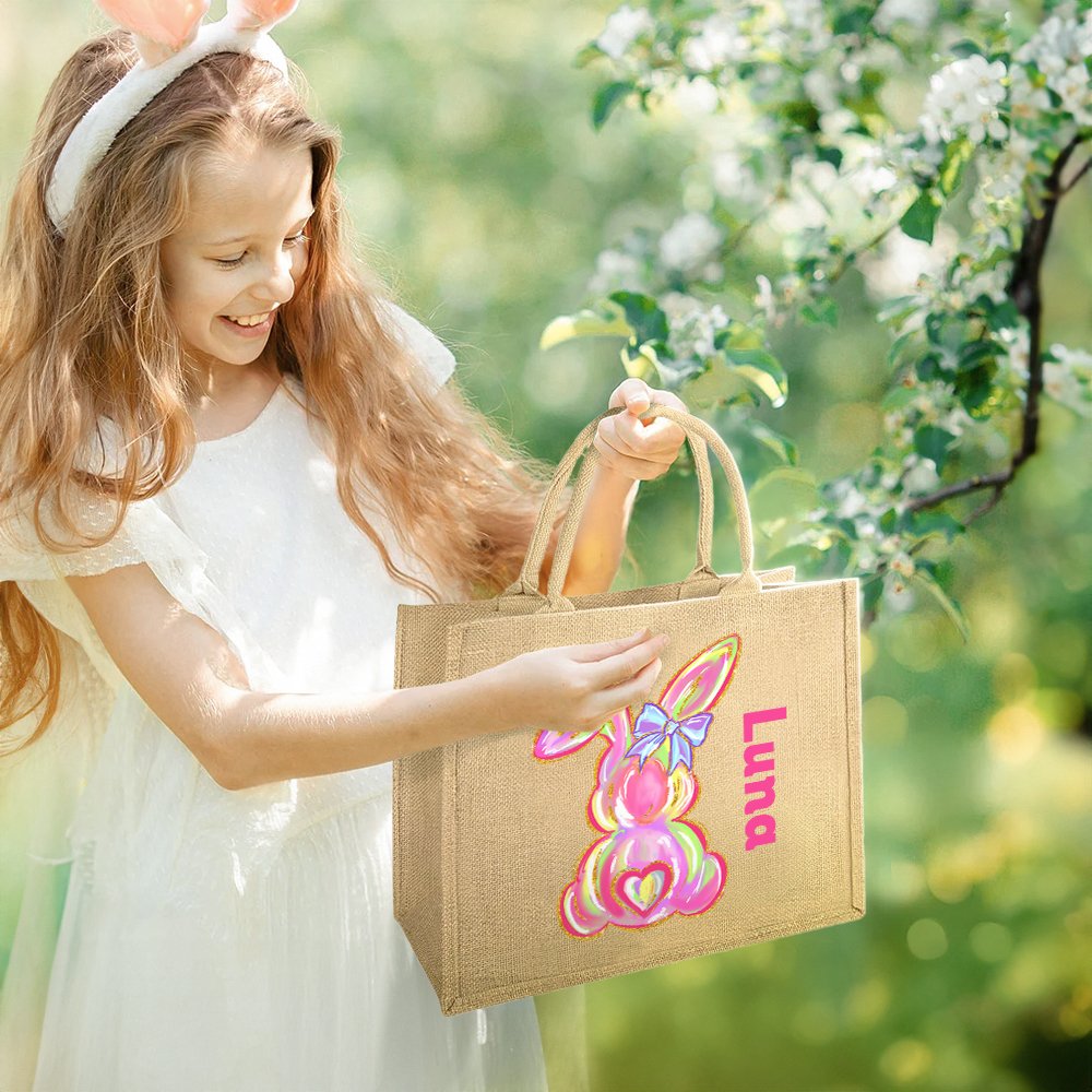 Dieser personalisierte Jutebeutel dient nicht nur praktischen Zwecken, sondern vermittelt auch warme Ostergeschenke. Sie eignet sich hervorragend als Geschenk für Kinder, beste Freunde und Schwestern zu den Feiertagen.