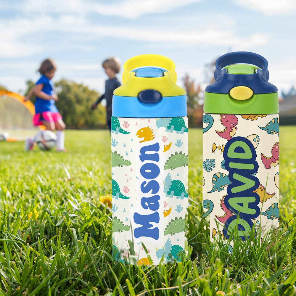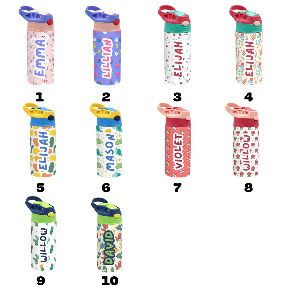 Eine bunte Auswahl an niedlichen Cartoon-Motiven schmückt diese 12 oz Wasserflasche, darunter niedliche Häschen, verspielte Dinosaurier und zarte Blumen. Du kannst die Wasserflasche mit dem Namen deines Kindes versehen, um ein persönliches Geschenk zu machen, das die Individualität deines Kindes unterstreicht und sein Hab und Gut hervorhebt.