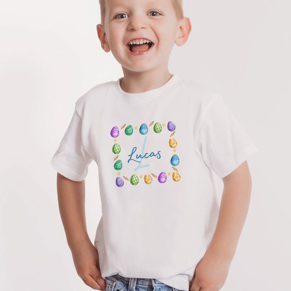 Personalisierte bunte Osterei-T-Shirt mit Namen Ostern Geschenk für Kinder