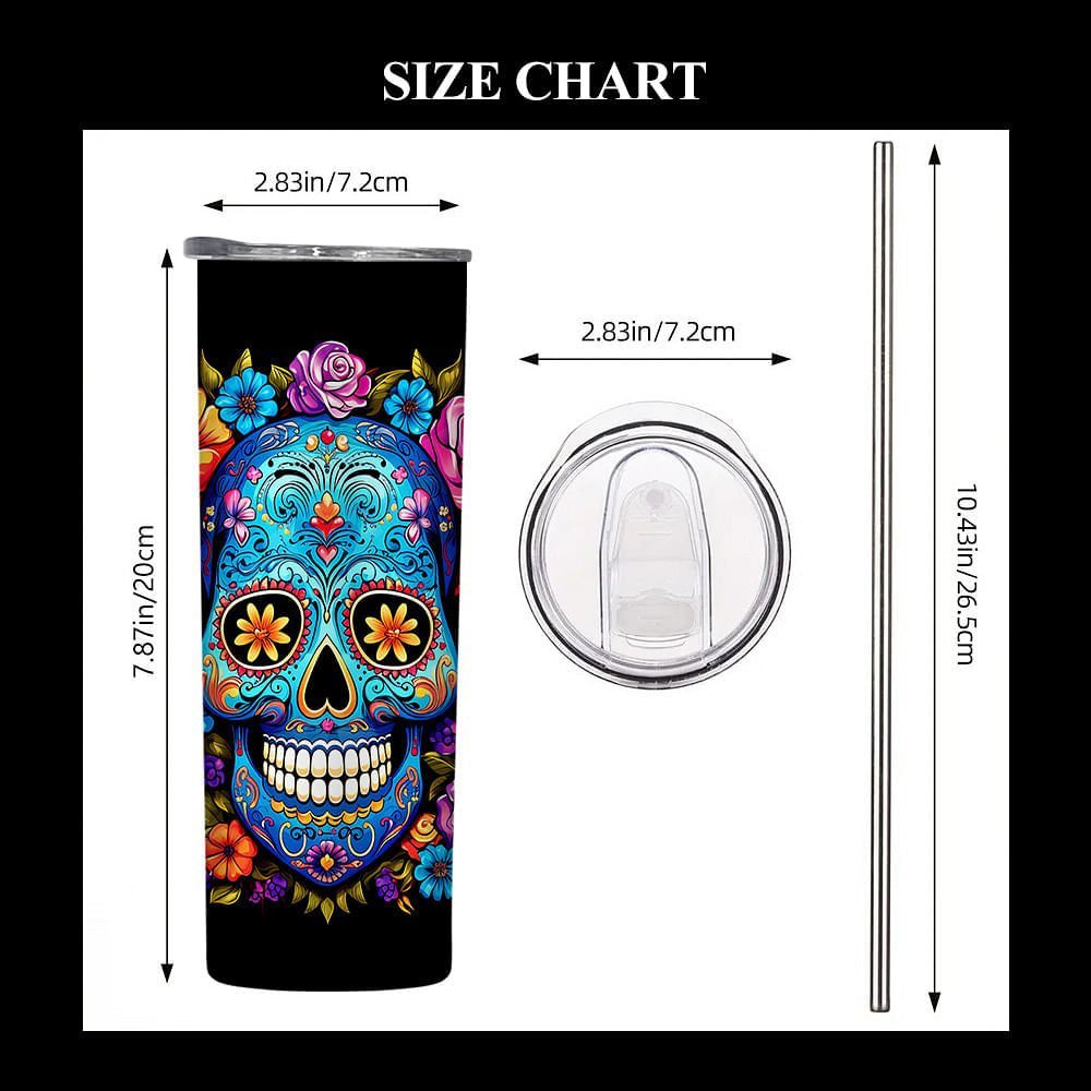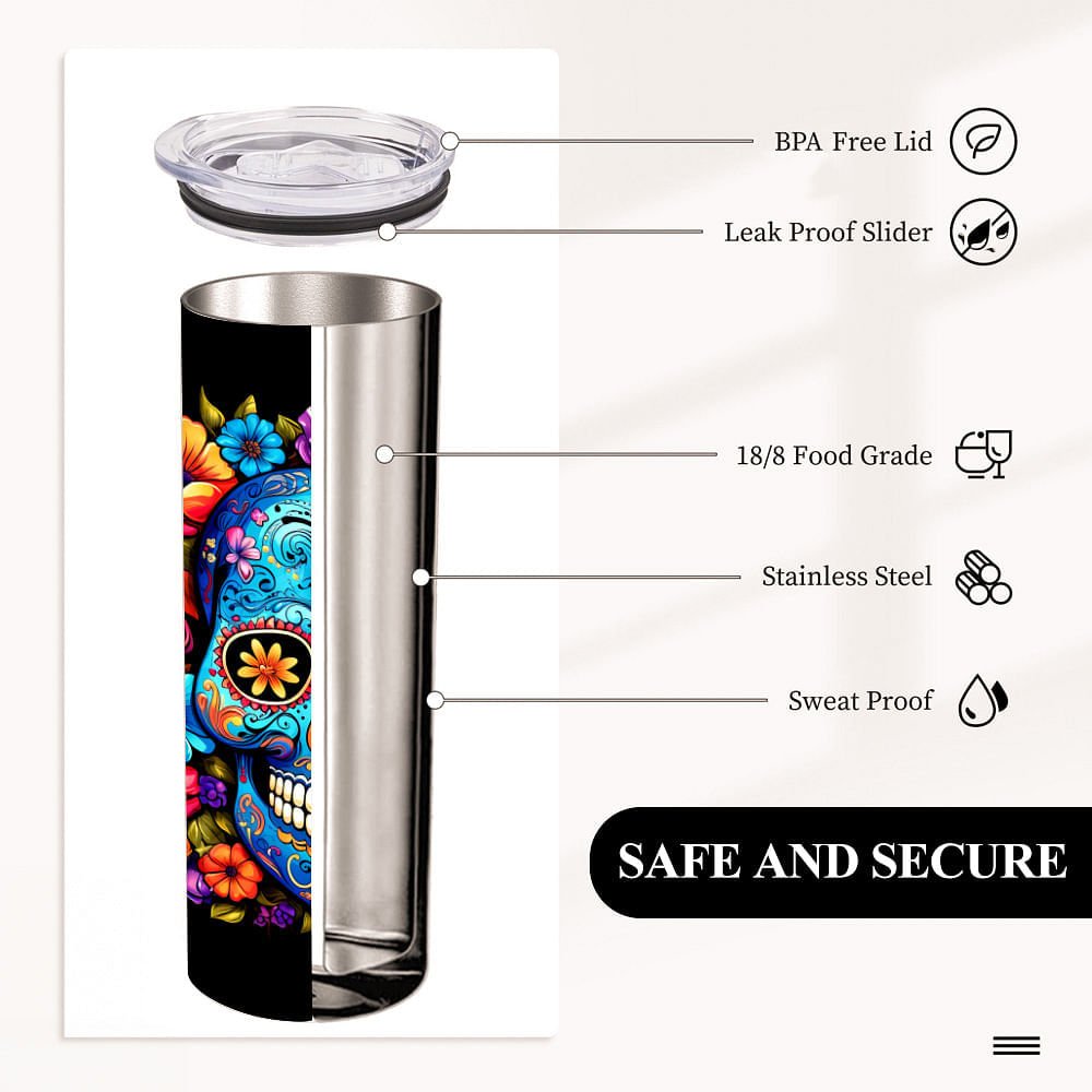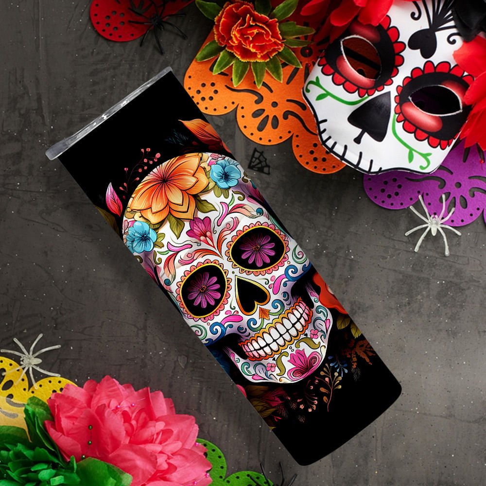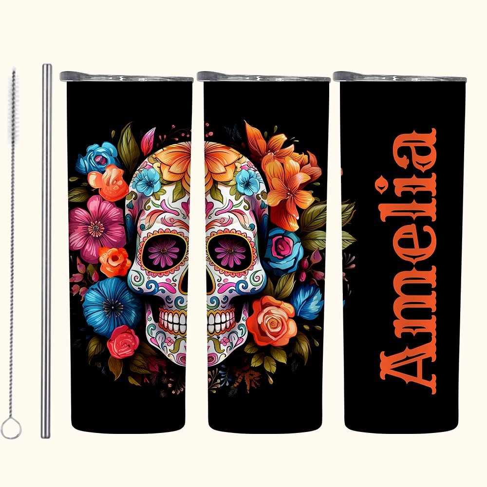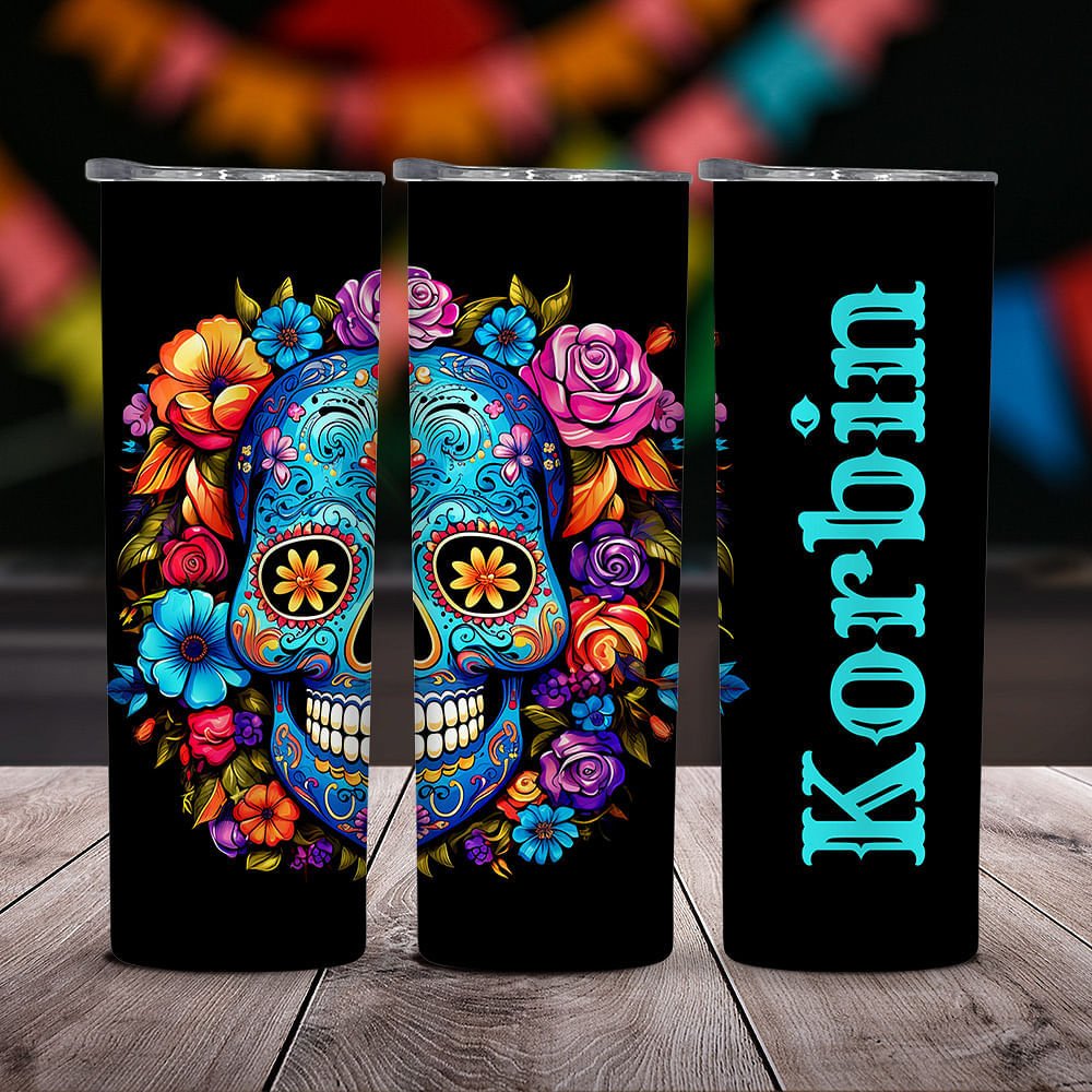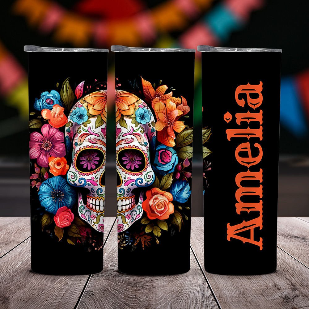 Dieser Becher ist eine perfekte Mischung aus Stil und Funktion und ist eine Hommage an die reichen Traditionen des Tages der Toten mit einem lebhaften Blumenschädeldesign. Die leuchtenden Farben und die floralen Totenköpfe verleihen dem Becher einen künstlerischen Touch; du kannst ihn sogar mit deinem Namen personalisieren.