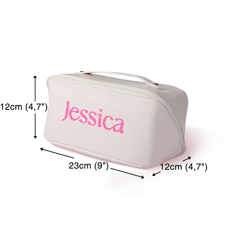 Das Design dieser Kosmetiktasche ist einfach, aber charmant, es kommt in vier Farben für Sie zur Auswahl. Sie können auch Ihren Namen auf die Kosmetiktasche drucken, und die glitzernden Namen Design können Menschen auf ersten Blick bemerken.