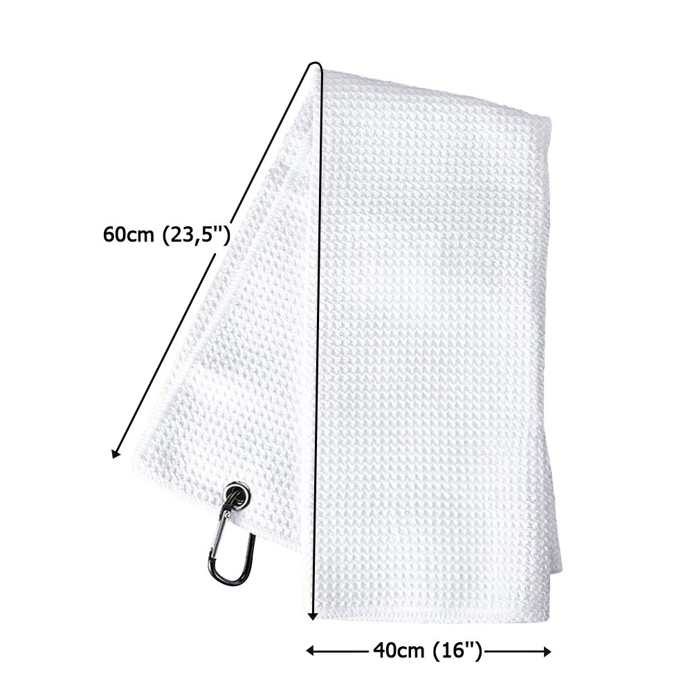 Dieses Handtuch besteht aus hochwertigem Mikrofaser, dem hervorragende Saugkraft und eine schnelle Trocknungseigenschaft bietet. Ob beim Schwitzen auf dem Golfplatz oder beim Abwischen Ihrer Schläger – dieses Handtuch nimmt Feuchtigkeit mühelos auf und sorgt dafür, dass Sie trocken und komfortabel bleiben. Leicht und kompakt lässt es sich problemlos zusammenfalten und in die Golftasche stecken, wodurch es zu einem unverzichtbaren Accessoire für Golfer wird.