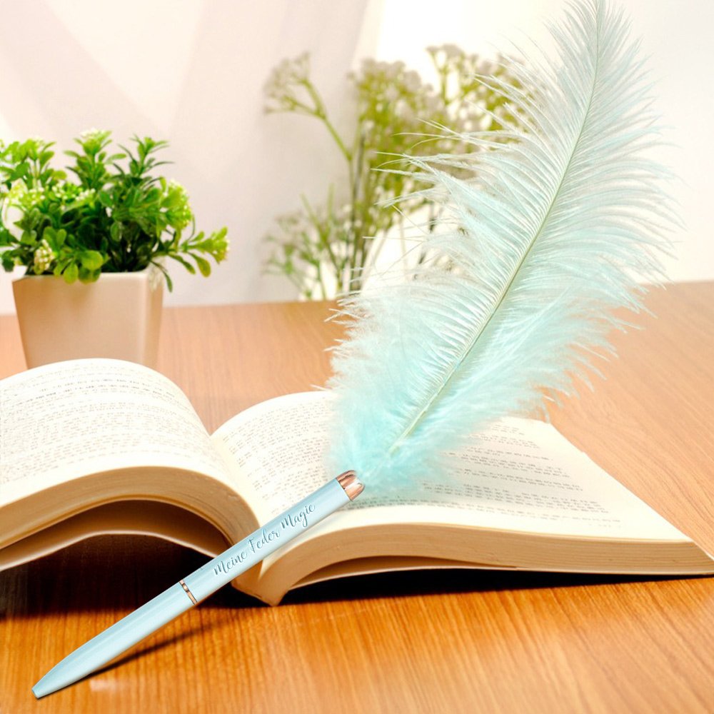 Dieser Feder Stift ist aus hochwertige Straußenfedern mit einem zarten Metallkörper gefertigt, der bequem und langlebig ist. Die Oberfläche der Feder wurde speziell behandelt, sodass die Farbe lebhaft und fade-resistent bleibt, um sicherzustellen, dass er auch nach langer Nutzung wie neu aussieht. Straußenfedern sind leicht und luftig, jedes Mal, wenn Sie wie ein Tänzer tanzen schreiben.