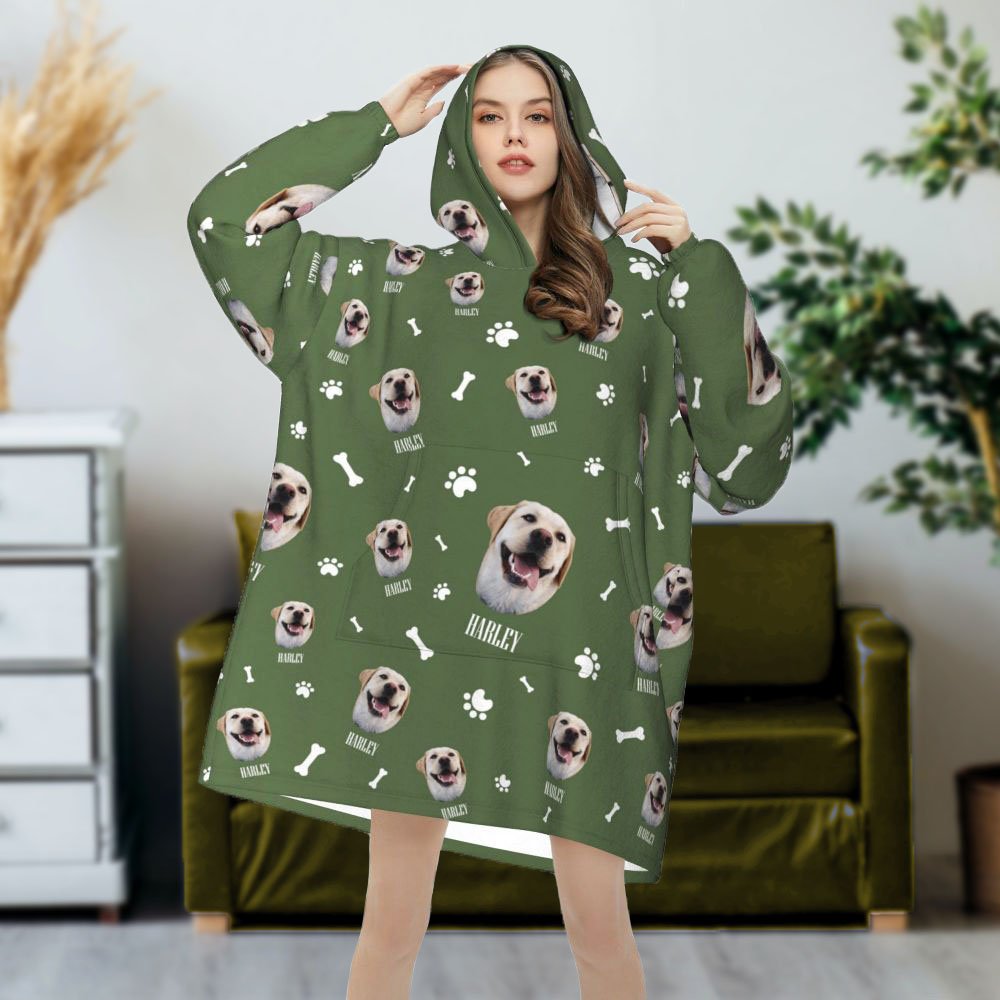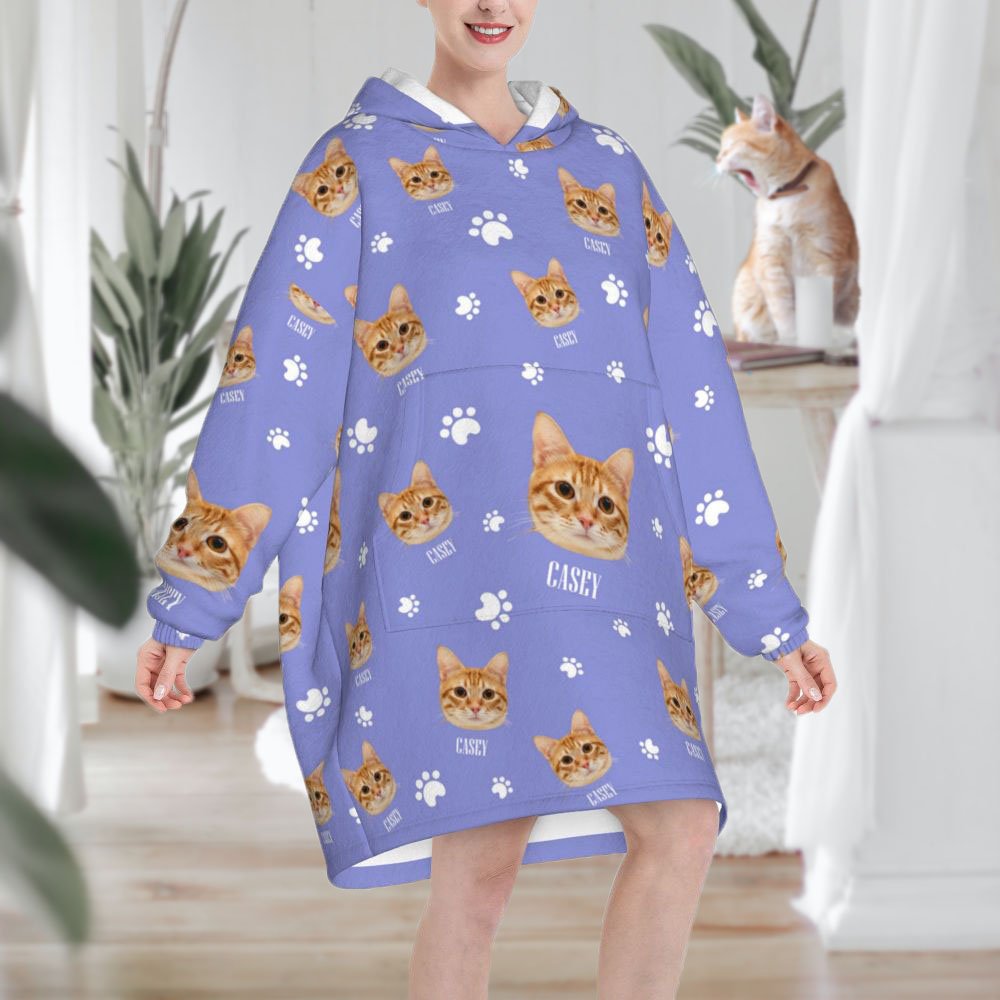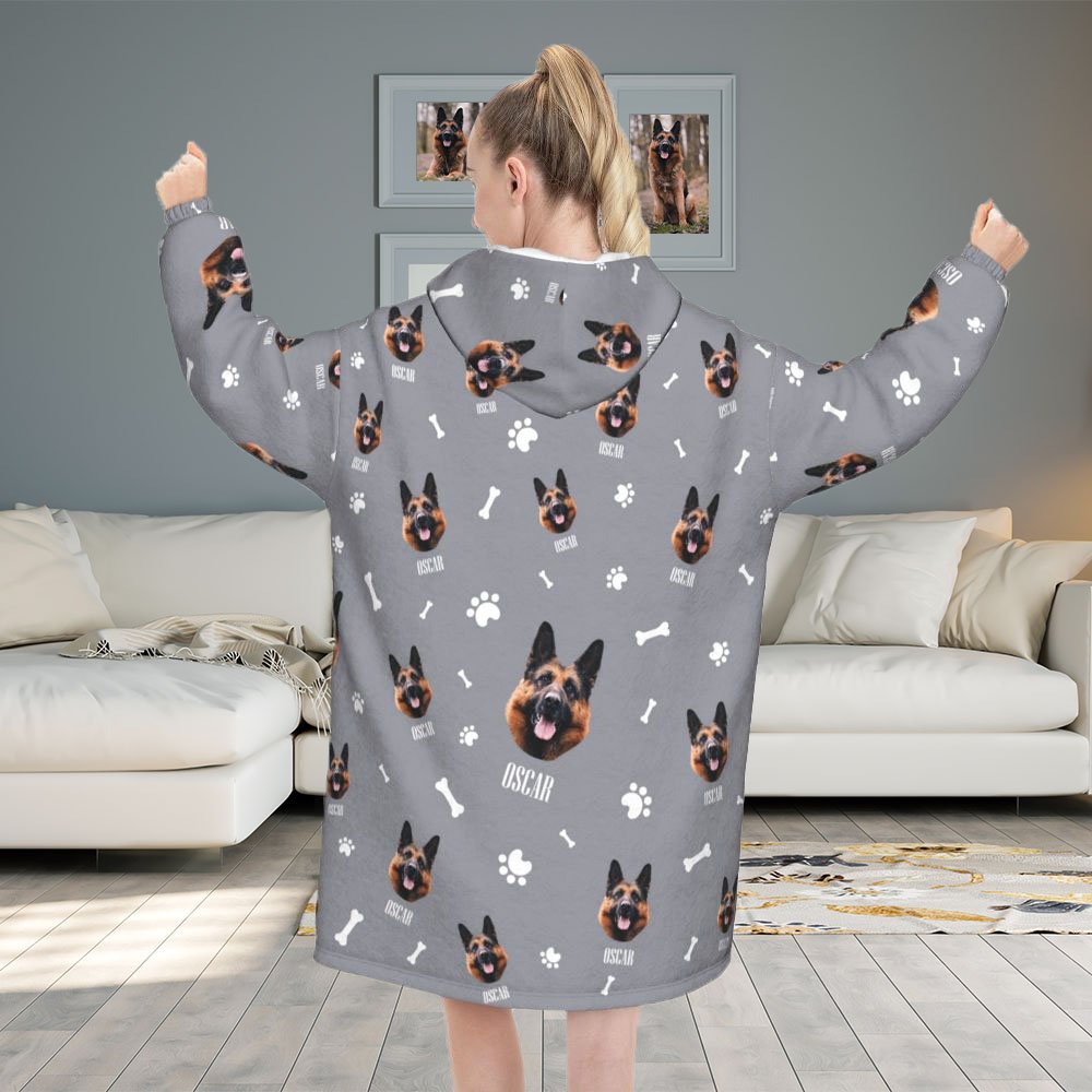Mit diesem Kapuzenpulli haben Sie jetzt eine ständige Erinnerung an Ihr geliebtes Haustier mitten in Ihrem Zuhause. Was dieses Produkt wirklich besonders macht, ist seine persönliche Note. Du kannst ganz einfach ein Foto deines geliebten Fellbabys hochladen und wir verwandeln es in einen charmanten Avatar, der auf die Decke gedruckt wird. Stellen Sie sich vor, wie schön es wäre, einen Hoodie mit dem Bild Ihres pelzigen Begleiters zu tragen. (EXQUISITE HANDWERKSKUNST): Das Design dieses Kapuzenpullis enthält auch niedliche Elemente aus der Tierwelt, wie Pfotenabdrücke und Knochen, die ihm einen zusätzlichen Charme verleihen. Die leuchtenden Farben und der hochwertige Druck sorgen dafür, dass das Bild lebendig und naturgetreu bleibt und einen atemberaubenden visuellen Effekt erzeugt. Der Kapuzenpullover ist aus weichem und strapazierfähigem Flanell gefertigt und daher nicht nur bequem, sondern auch pflegeleicht.