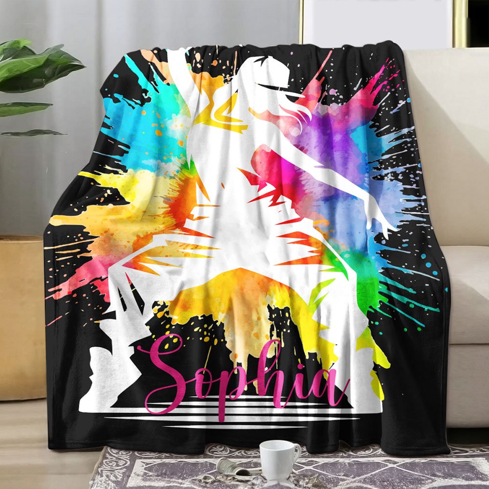 Personalisierte bunte Splash Ink Hip Hop Junge Mädchen weiche Decke mit Namen Tanzen Party Home Decor Geburtstagsgeschenk für Hip Hop Liebhaber