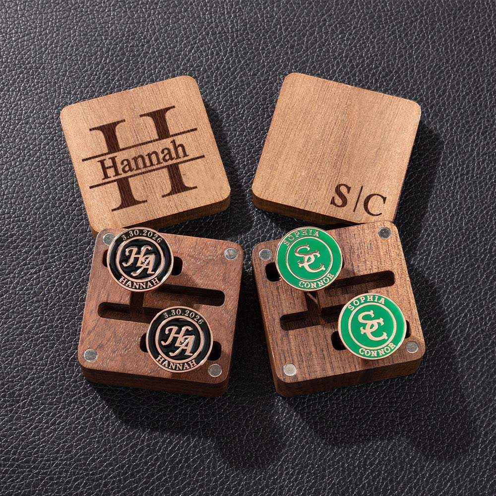 Diese personalisierten Manschettenknöpfe zeichnen sich durch ein lebhaftes, farbenfrohes Design aus, das mit Initialen, Daten, Orten oder einer besonderen Nachricht versehen werden kann. Sie setzen ein mutiges Statement und verleihen jeder formellen Kleidung einen Hauch von Persönlichkeit. Die Box kann auch mit verschiedenen Stilen angepasst werden.