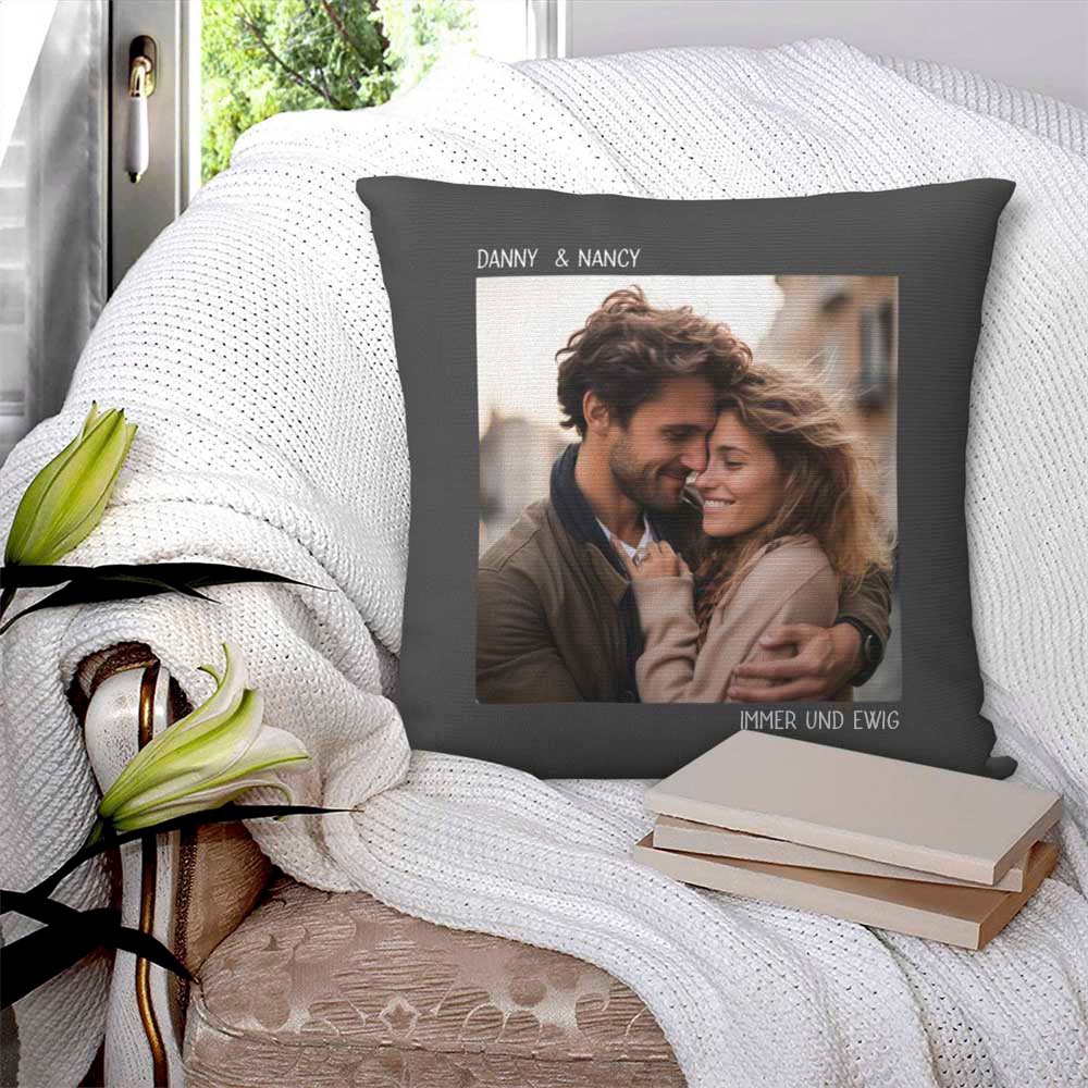 Unsere Kissenbezüge sind aus hochwertigem Stoff gefertigt und zeichnen sich durch ein lebhaftes und farbenfrohes Design aus. Der individuelle Druck sorgt dafür, dass das Foto und der Text klar und scharf sind und jedem Raum eine persönliche Note verleihen.