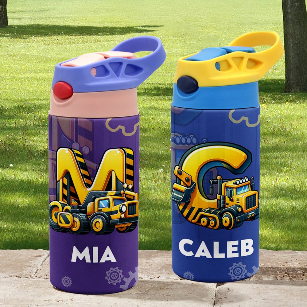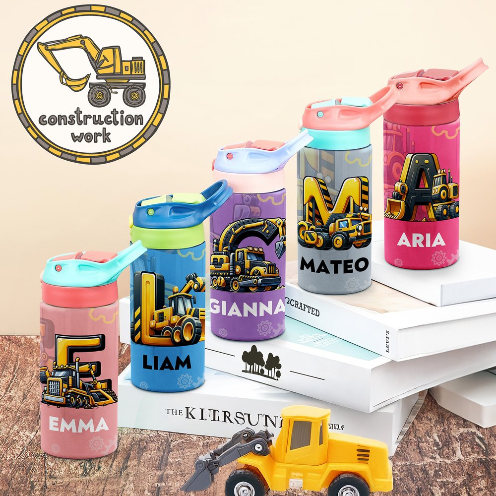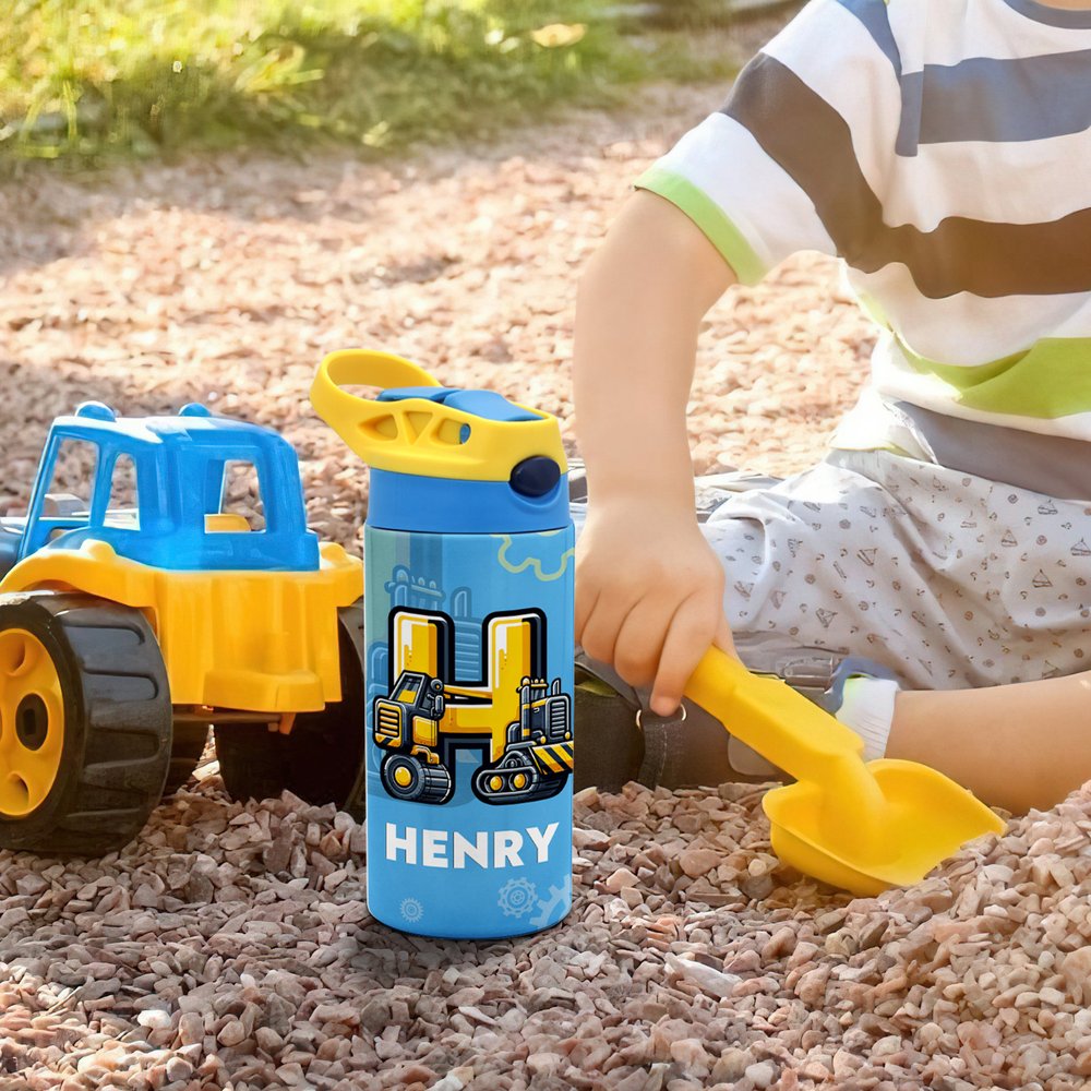 Mit den Initialen des Baufahrzeugs und verschiedenen Flaschenfarben ist diese Wasserflasche ein Hit für kleine Ingenieure. Du kannst sie mit dem Namen deines Kindes personalisieren, um ein einzigartiges Geschenk für sie zu kreieren.