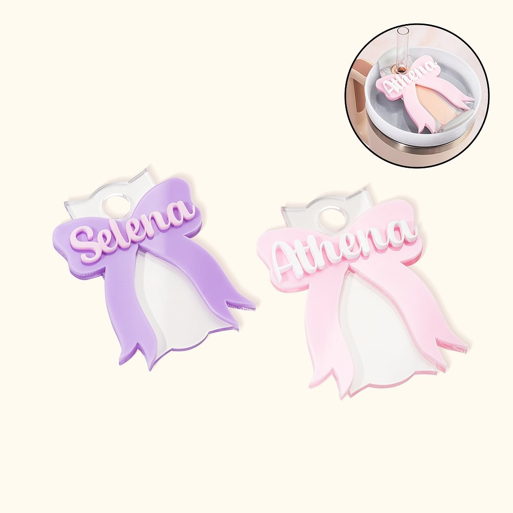 Our tumbler lid topper features a beautifully crafted bow design that exudes elegance and romantic charm. You can customize it with the color and a personalized name, making it a unique accessory that reflects individual personality and style.