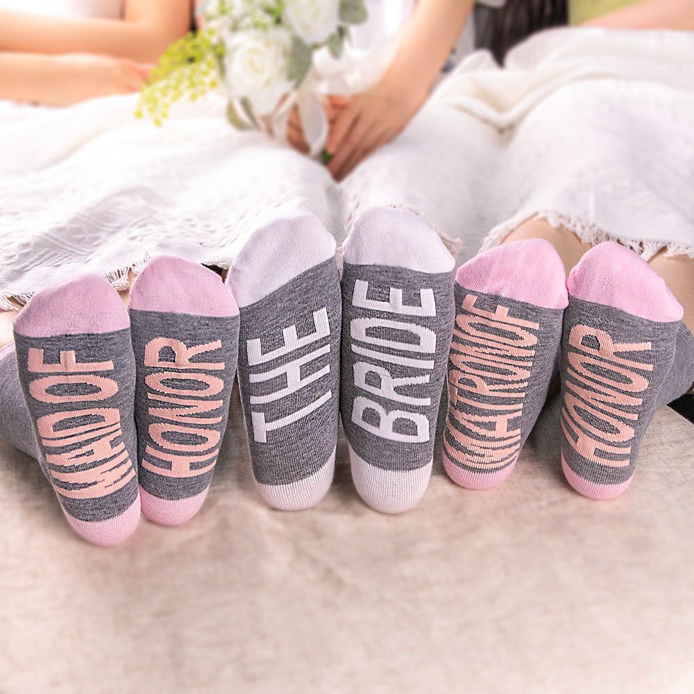 Ein modernes Paar Damen-Hochzeitssocken, entworfen mit Eleganz und Liebe für alle Mitglieder des besonderen Tages! Diese niedlichen Socken, die von Boutique-Stylisten entworfen wurden, sind ideal für Ihre Brautjungfern, Trauzeugen, die Braut oder sogar für Sie selbst als Geschenk für die Brautparty! (GRÖSSENDETAILS): Diese weichen, flexiblen und dehnbaren Socken gelten als Einheitsgröße für die meisten! Wunderbare Passform für viele Altersgruppen und Größen der Brautparty.