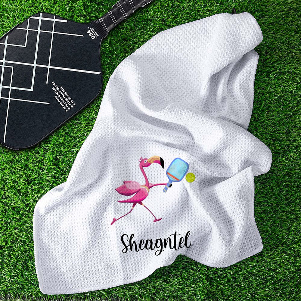 Dieses Handtuch ist nicht nur ein praktisches Sportgerät, sondern auch ein Kunstwerk, das Persönlichkeit zeigt. Das Handtuch ist mit Flamingo- und Pickleball-Mustern bedruckt, die Begeisterung und Vitalität vermitteln. Sie können auch Ihren Namen auf das Handtuch drucken lassen, um Ihre Liebe und Ihren Stolz für diesen Sport zu zeigen.