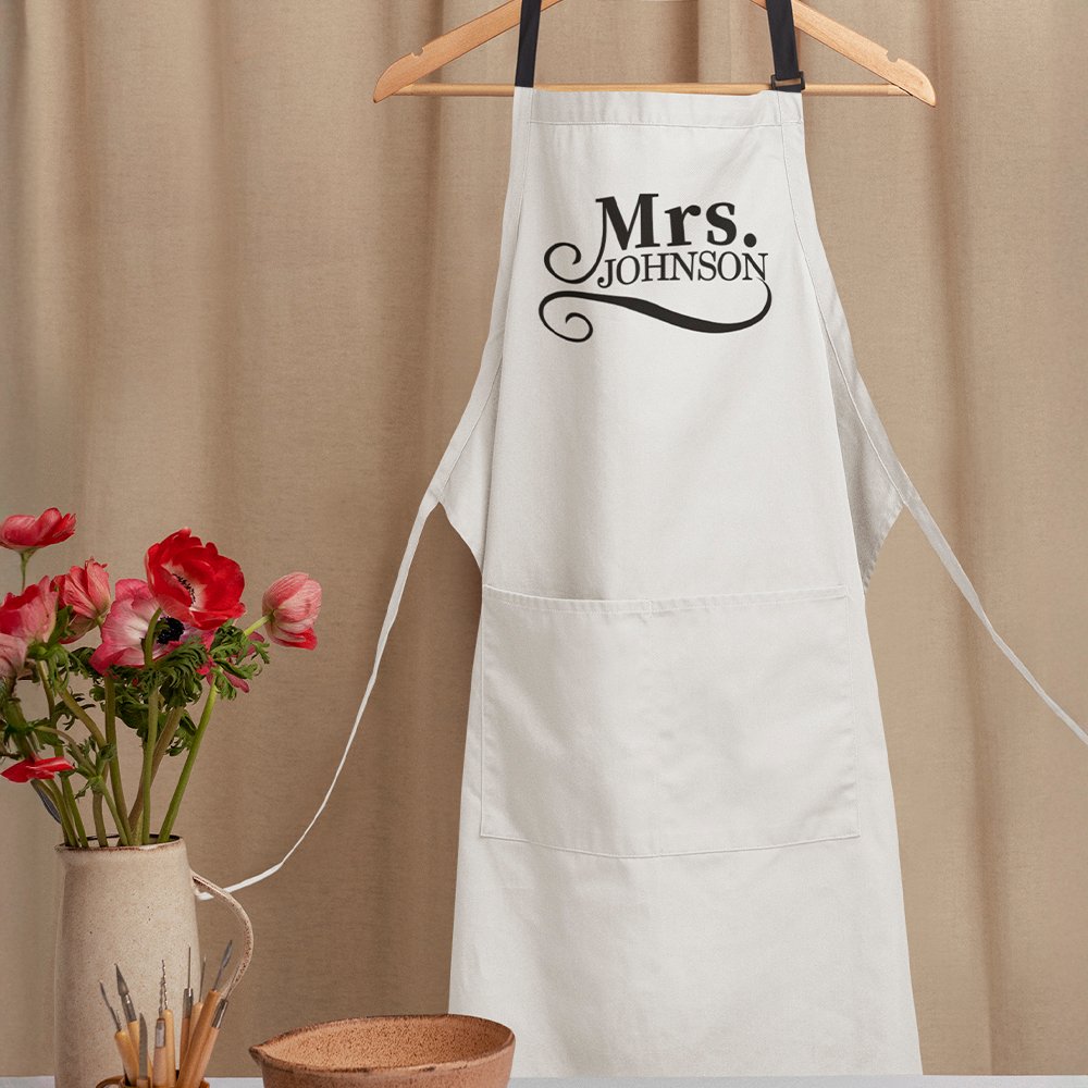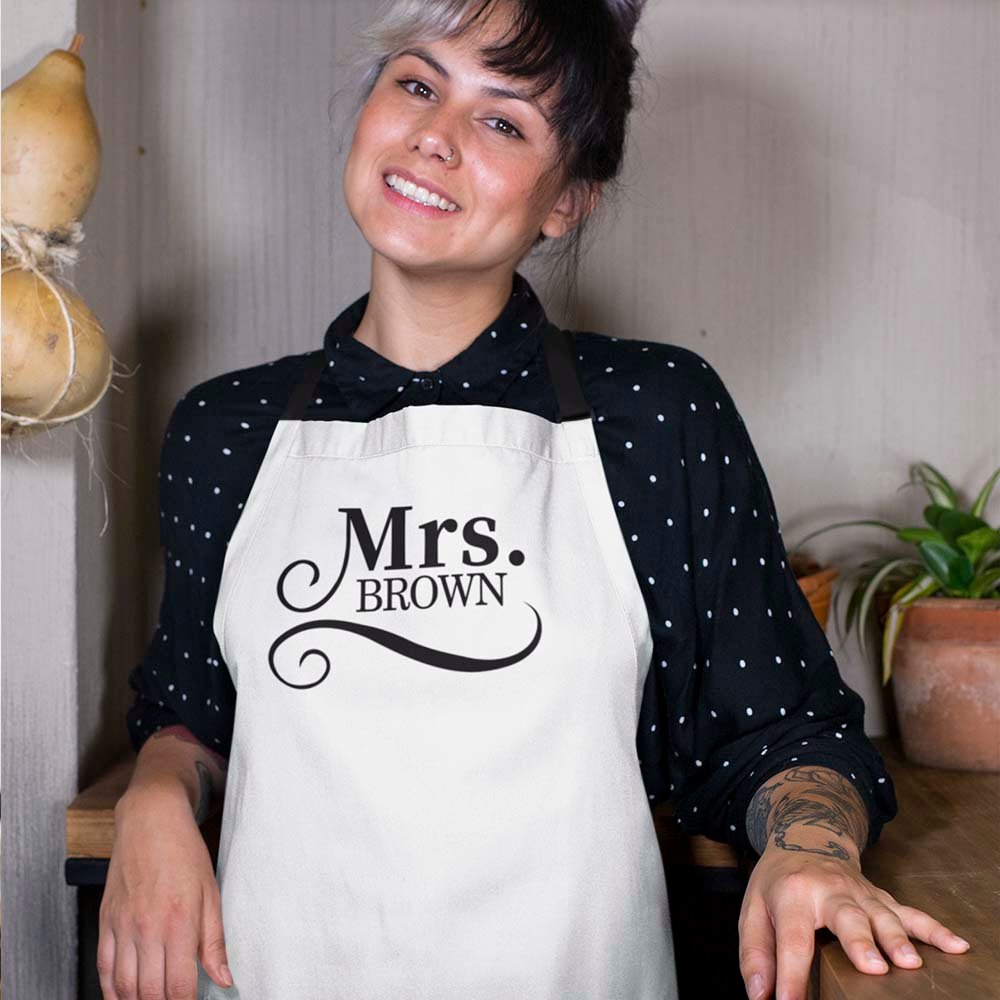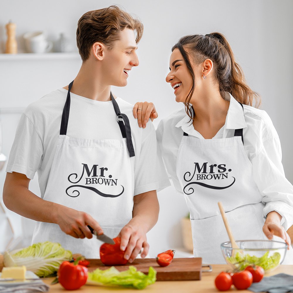 Eines der Highlights der Schürze ist das Namensdesign des Paares mit dem exklusiven MR. und MRS. Für einen einzigartigen und exklusiven Stil. Egal, ob Sie ein Gourmet-Koch sind, der gerne kocht, oder ein Gelehrter, der gerne mit seinen handgemachten Kreationen für Aufsehen sorgt, diese Schürze wird Ihren Stil unterstreichen.