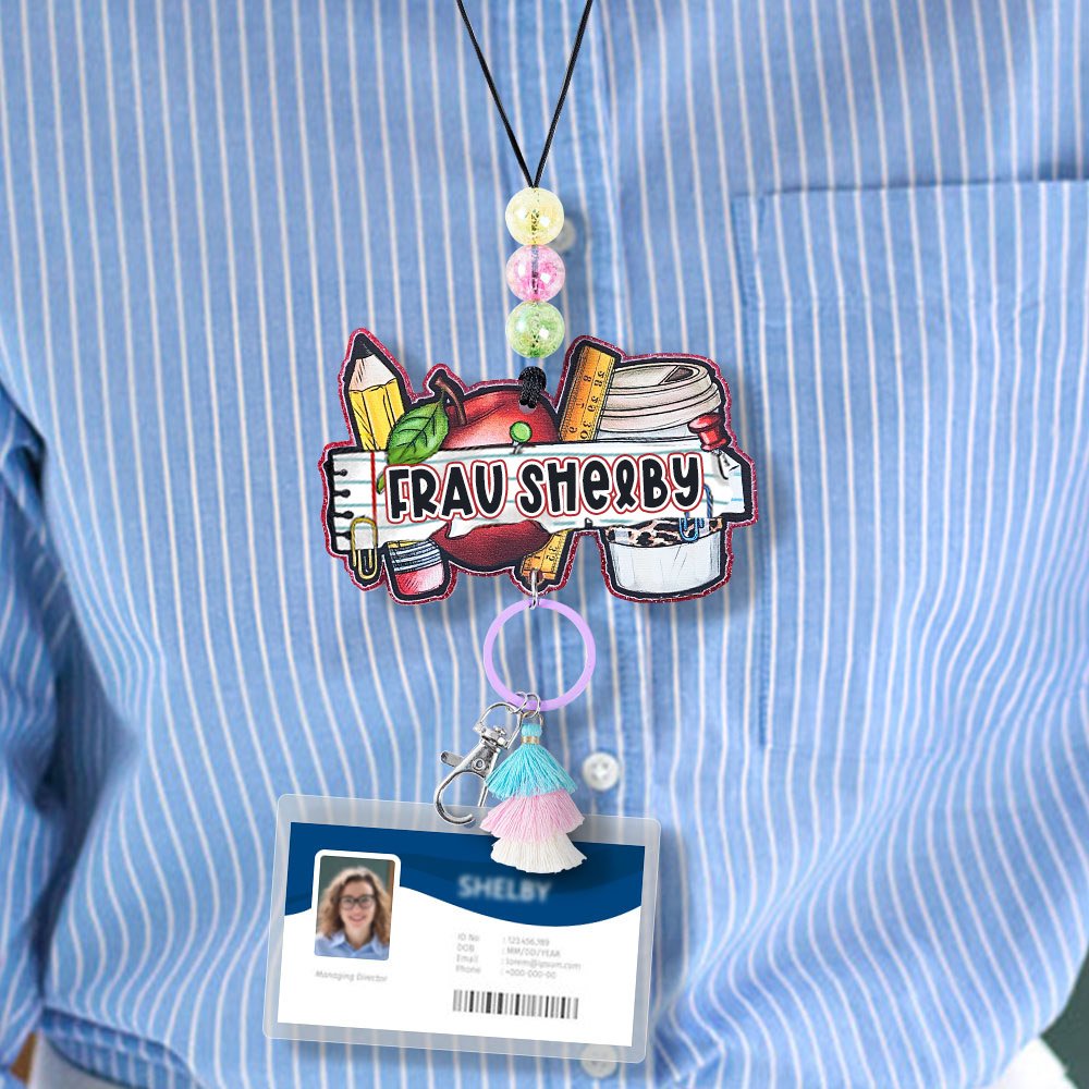 Dieses Umhängeband ist optimal für den täglichen Einsatz und gewährleistet, dass Ihre wichtigsten Utensilien stets ordentlich und schnell erreichbar sind. Zudem eignet es sich hervorragend für besondere Anlässe wie den Lehrertag oder Schulveranstaltungen und verleiht Ihrem Erscheinungsbild eine freundliche und persönliche Note.